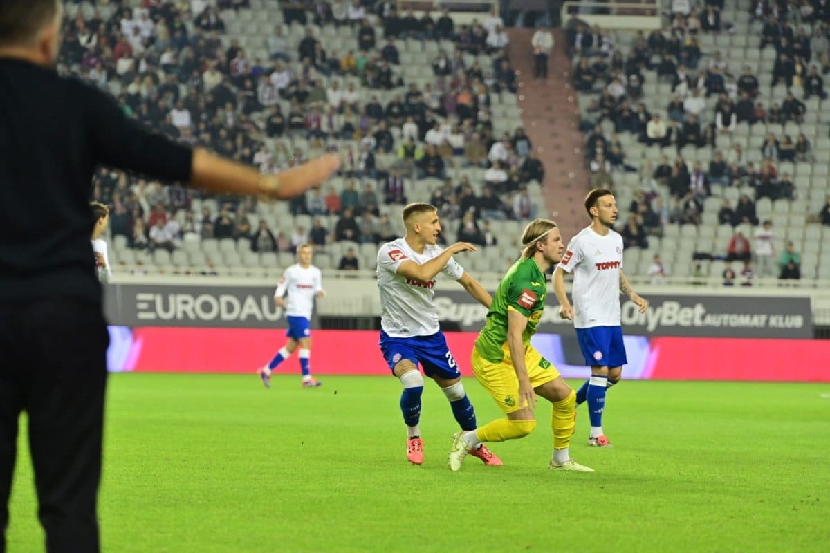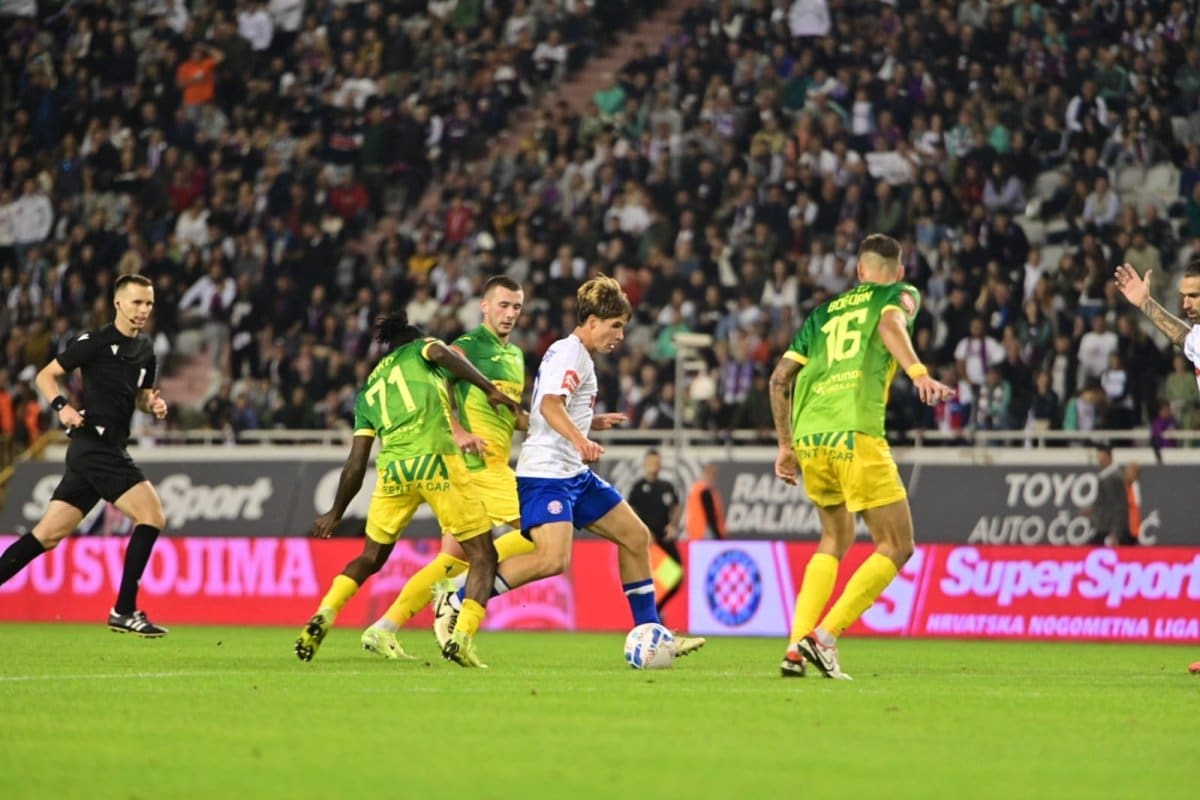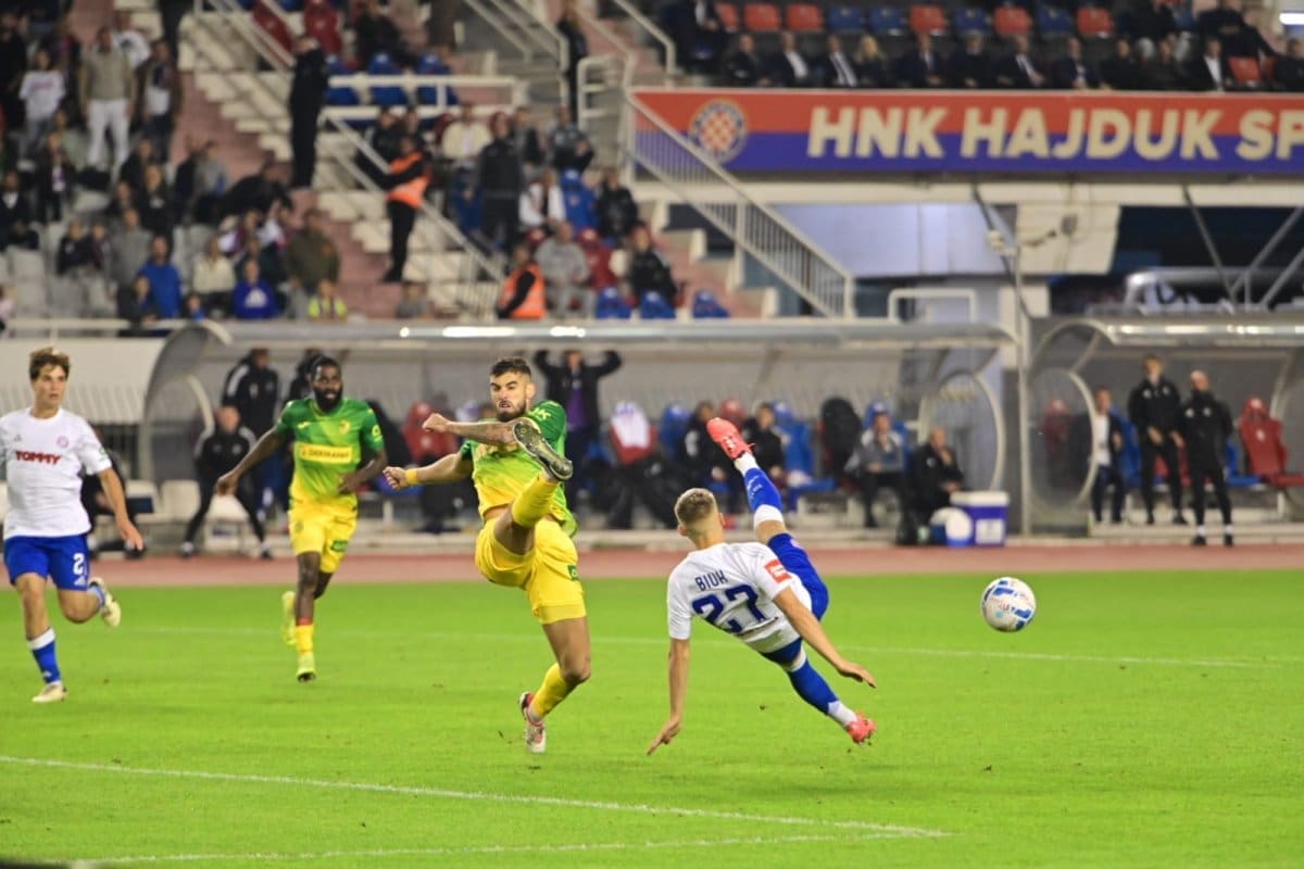 U 84. je minuti Hajduk izjednačio: Moufi je dodao za Livaju koji još jednom majstorski podvaljuje u prostor za Benrahoua čiji je udarac iz okreta od ruke Bogdana završio u golu. I taj se pogodak provjeravao, a sudac je nakon VAR provjere pokazao na centar za izjednačenje 1:1.