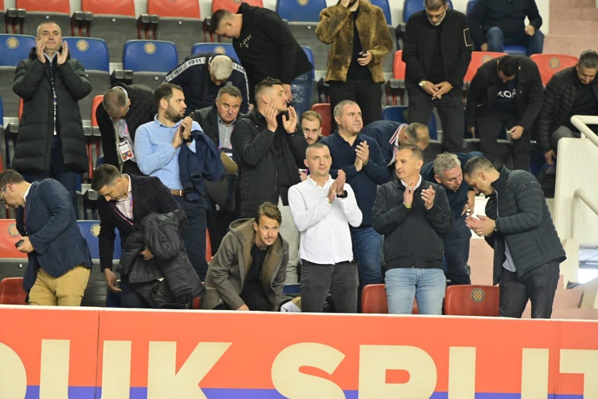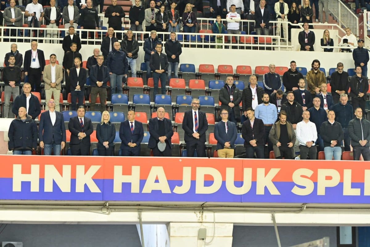 Prije samog početka susreta, Poljud se minutom šutnje oprostio od Tonča Gabrića, legendarnog vratara Hajduka. Potom je uslijedio pljesak, a Torcida je skandirala Tonči Gabrić.