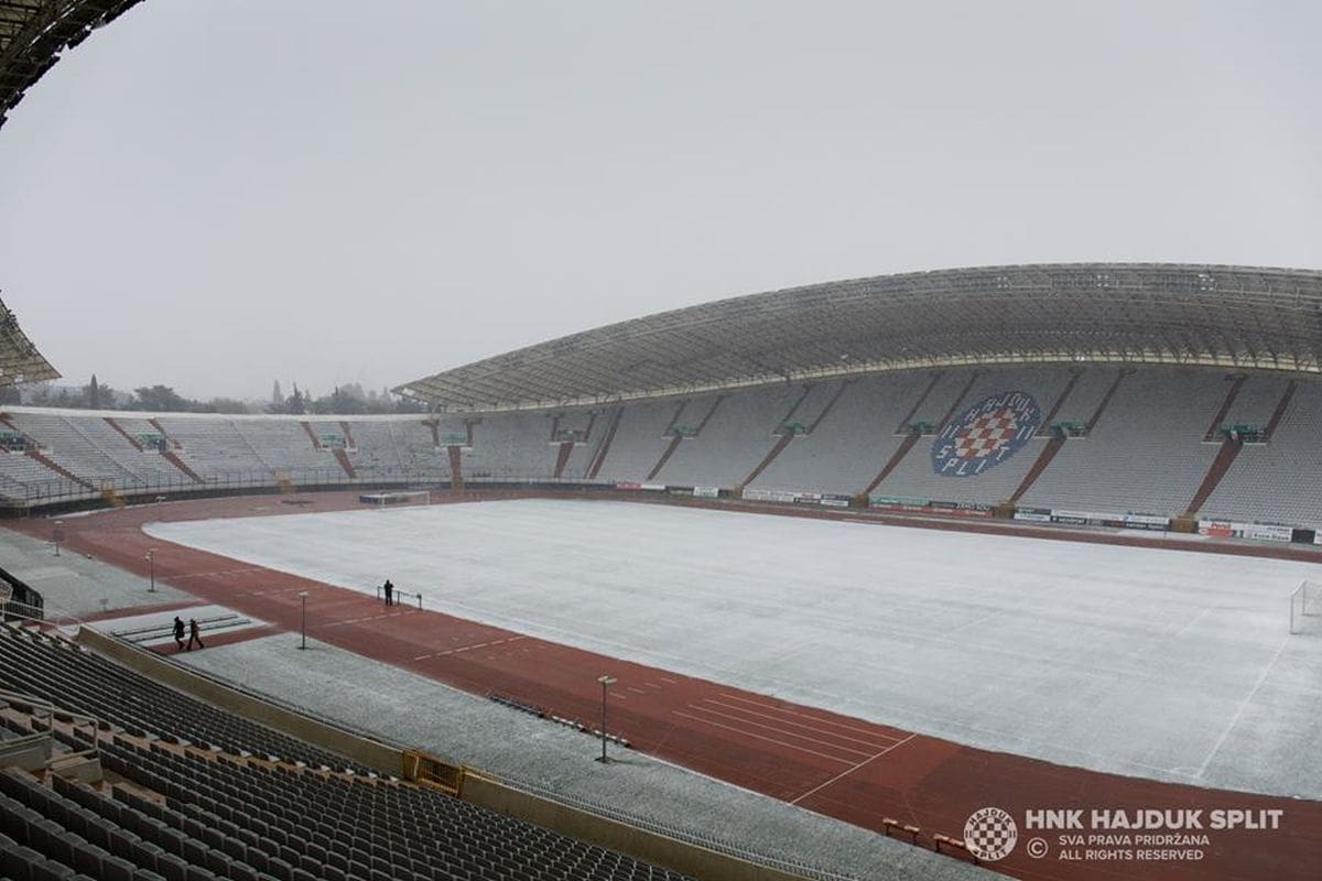 Kako Poljudska ljepotica izgleda prekrivena snijegom pogledajte u službenoj fotogaleriji Hajduka.