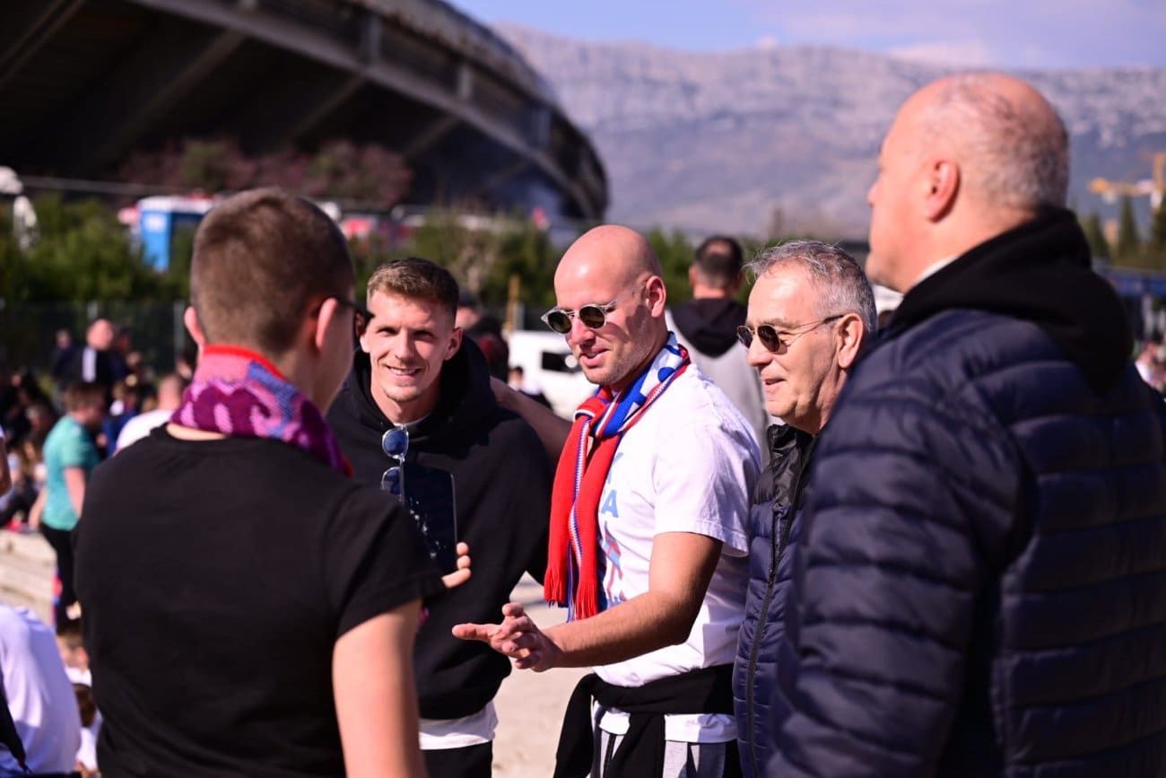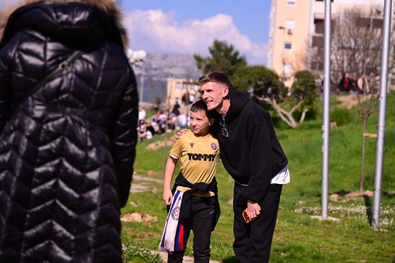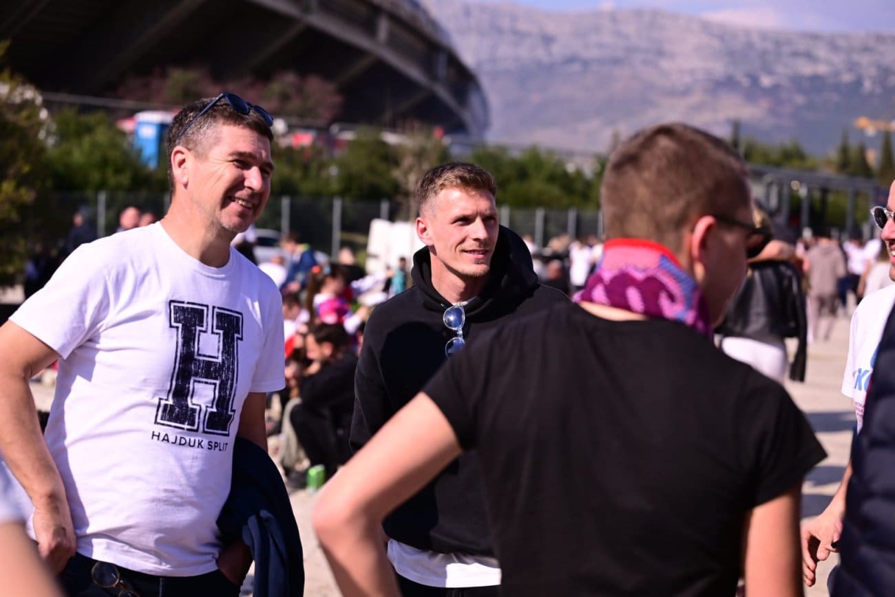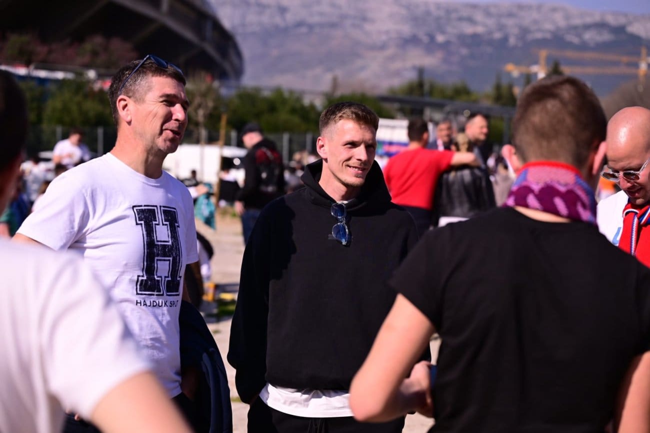 Poljud se polako puni, navijači pristižu sa svih strana, a mi smo pred istočnom tribinom sreli poznato lice. Na derbi je stigao nekadašnji igrač Hajduka Emir Sahiti. Rado je pozirao s navijačima, a kako je sve izgledalo pogledajte u galeriji našeg Roka Pavlinušića.