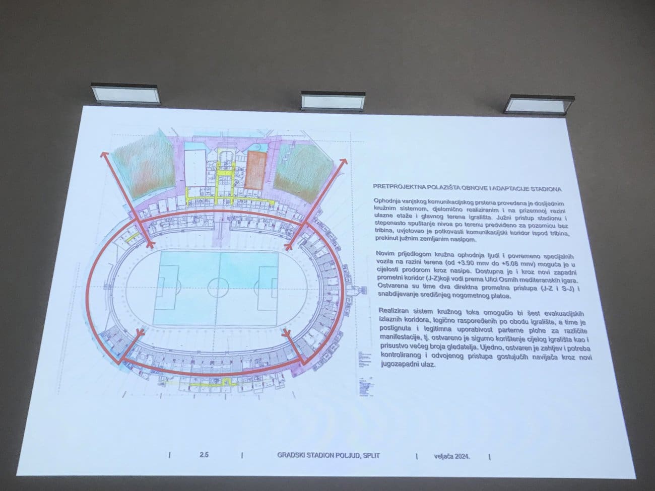 Kratki video koji je kasnije prikazan, a uoči prezentacije je bio objavljen na Youtubeu i odmah dobio mnogobrojne “stručne” ocjene, prikazao je prostorne mogućnosti Poljuda i njegovog neposrednog okoliša. Pokazalo se da prikazani rad upravo i služi tome da se sagleda stvarni kapacitet prostora budući da ga je u zatečenom stanju nemoguće sagledati iz objektivnih razloga – jer bi trebalo odvesti škovace, skinit ternitu, ukloniti pregrade od bloketa.