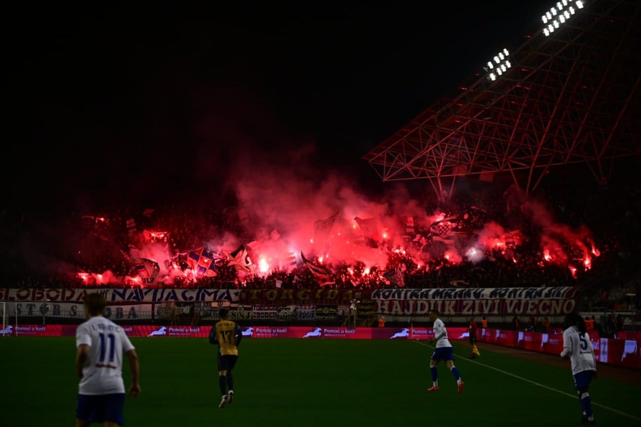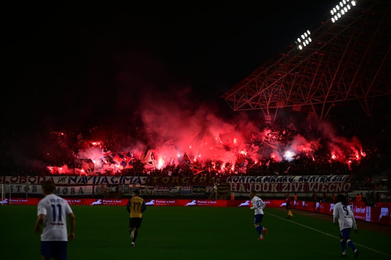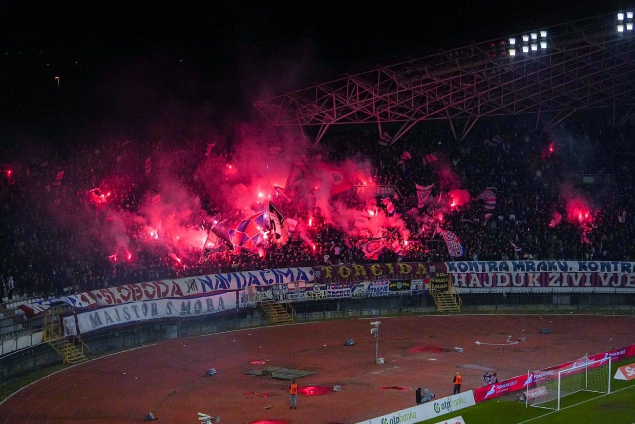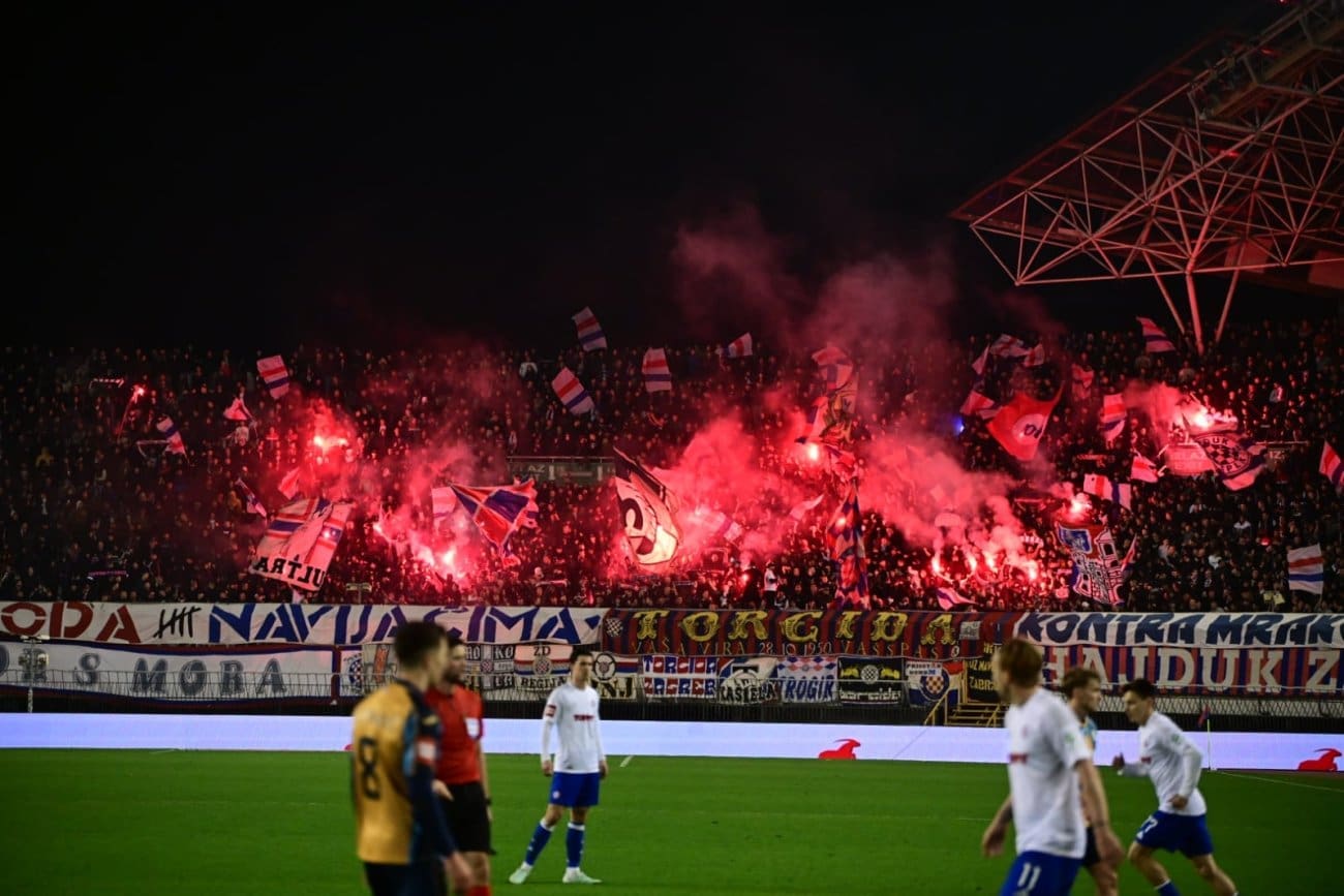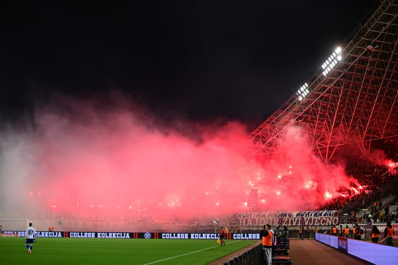 U 70. minuti Torcida je pripremila veliku bakljadu na sjevernoj tribini zbog čega je nakratko i prekinuta utakmica.
