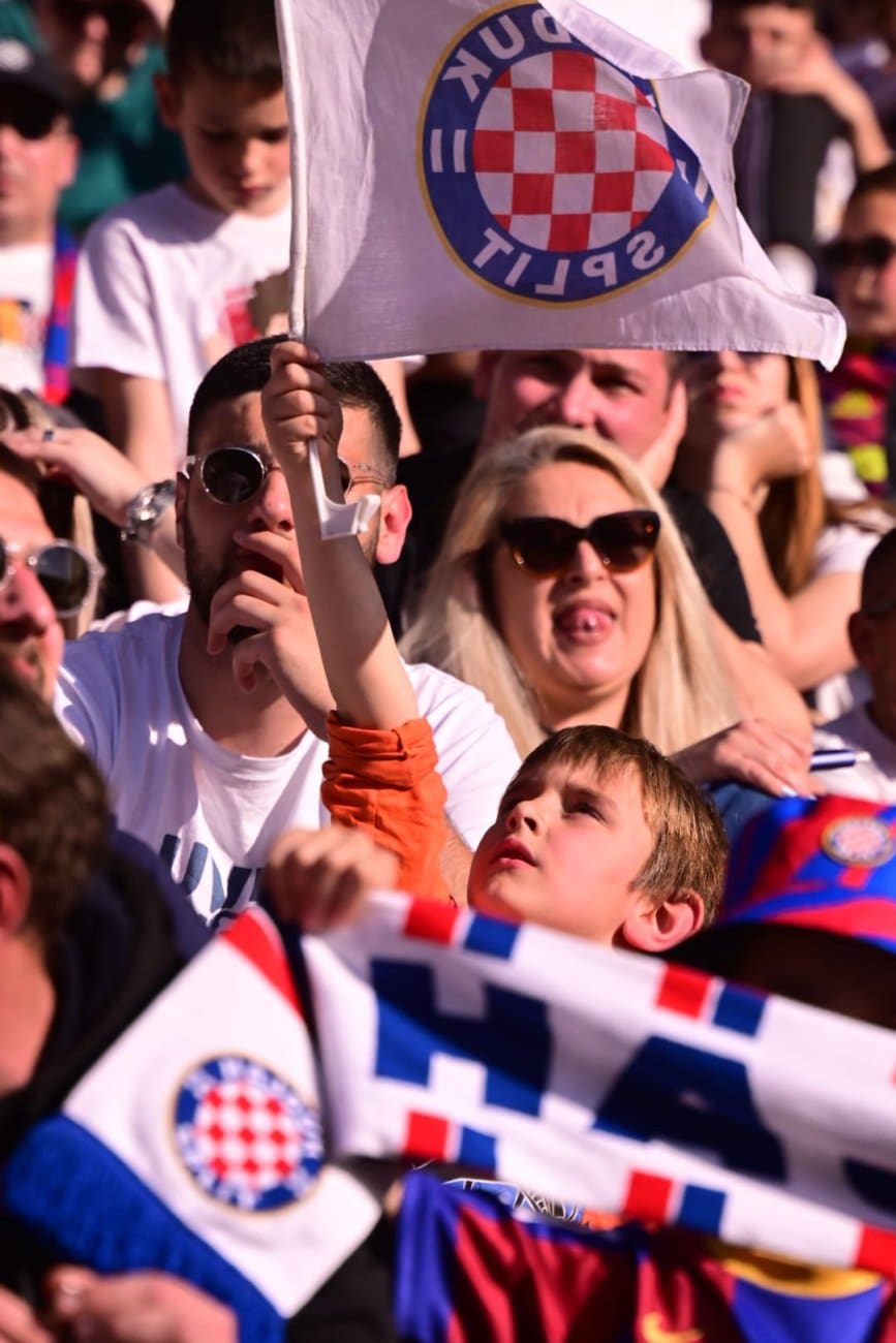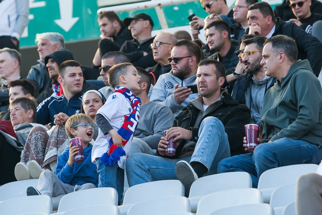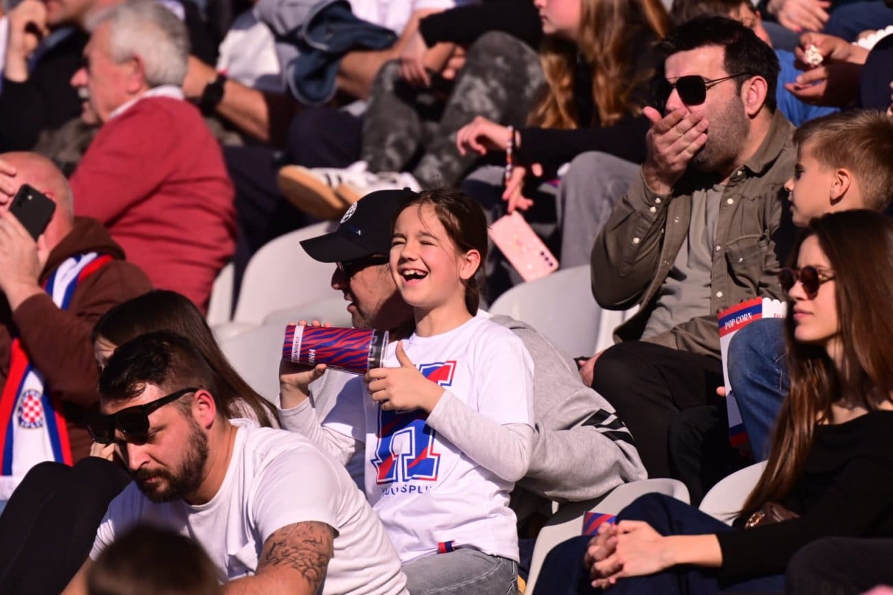 Na Poljudu su, kao i mnogo puta do sada, prisutne sve generacije – od onih najmlađih koji tek upoznaju čari nogometa i dolaska na stadion, do starijih navijača koji desetljećima prate Bijele. Mnogi su stigli u obiteljskom okruženju, s djecom i prijateljima, stvarajući ugodnu i pozitivnu atmosferu na splitskom stadionu.