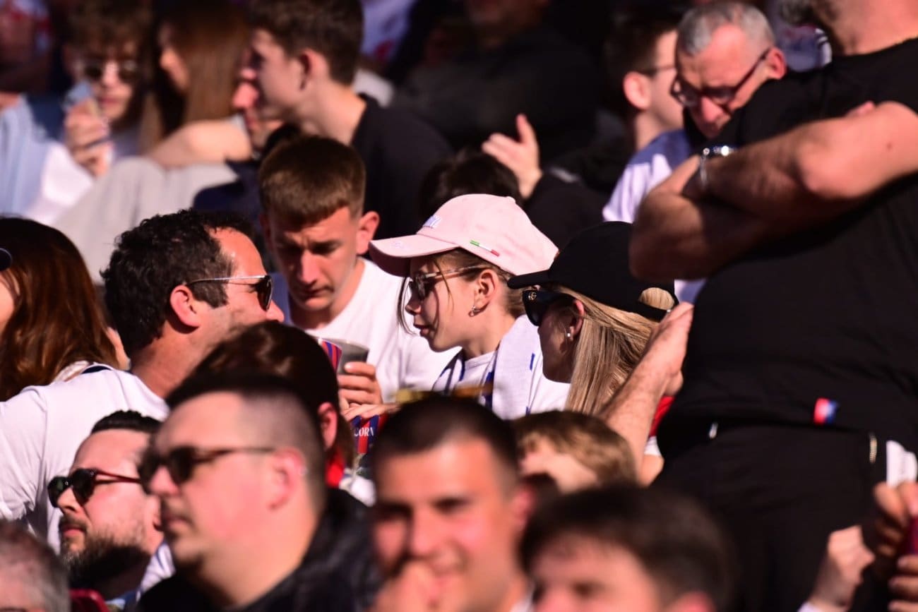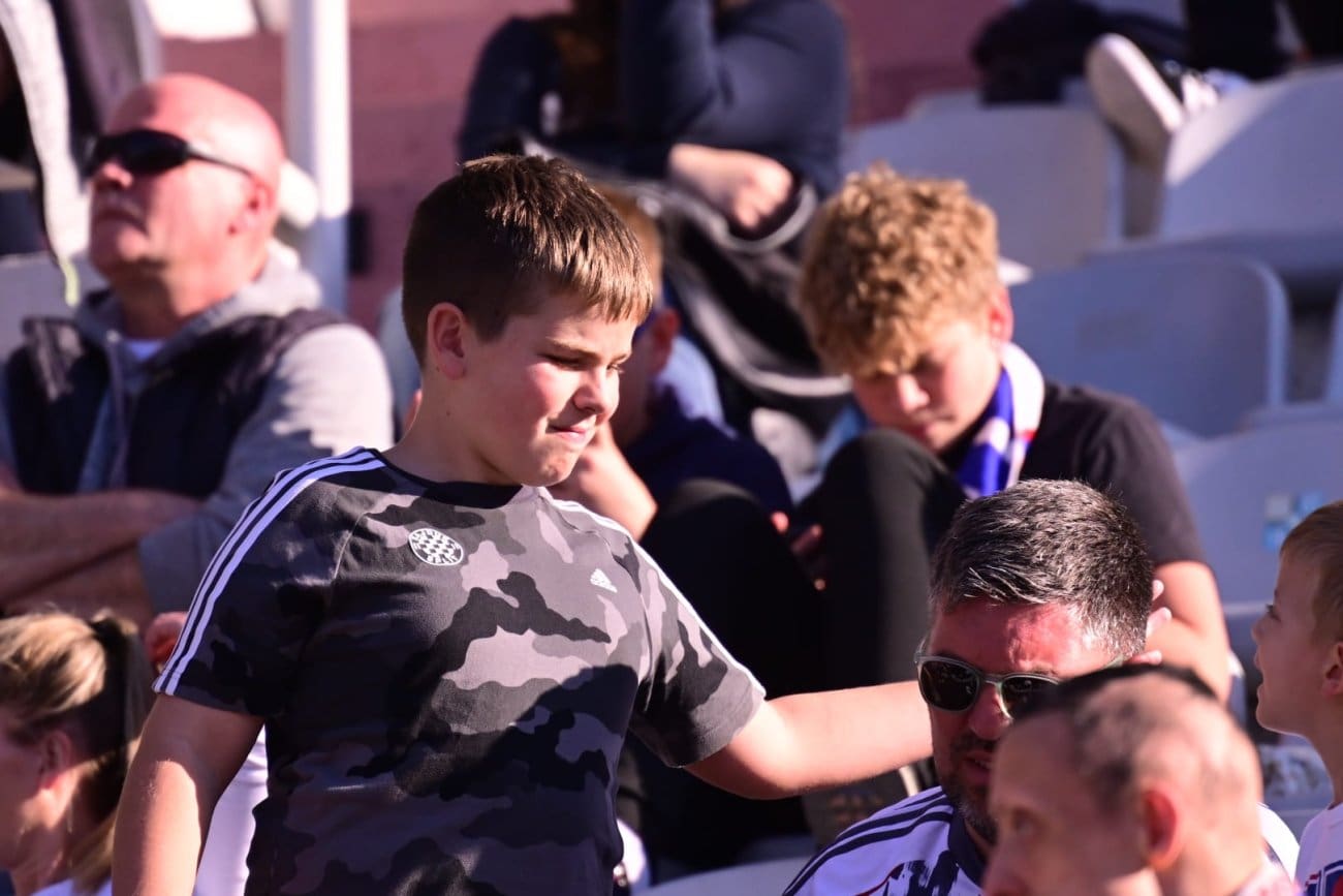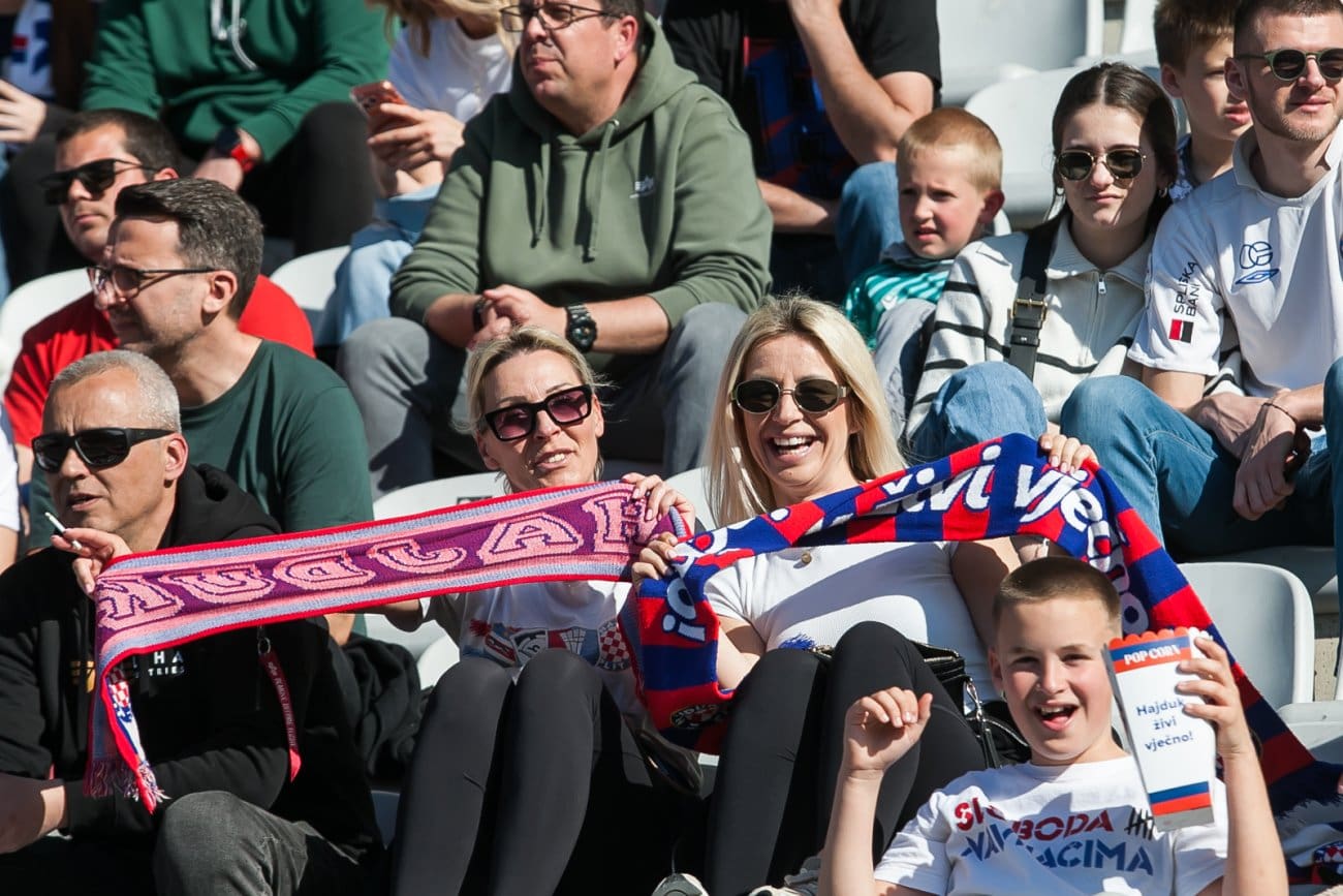 Na Poljudu su, kao i mnogo puta do sada, prisutne sve generacije – od onih najmlađih koji tek upoznaju čari nogometa i dolaska na stadion, do starijih navijača koji desetljećima prate Bijele. Mnogi su stigli u obiteljskom okruženju, s djecom i prijateljima, stvarajući ugodnu i pozitivnu atmosferu na splitskom stadionu.