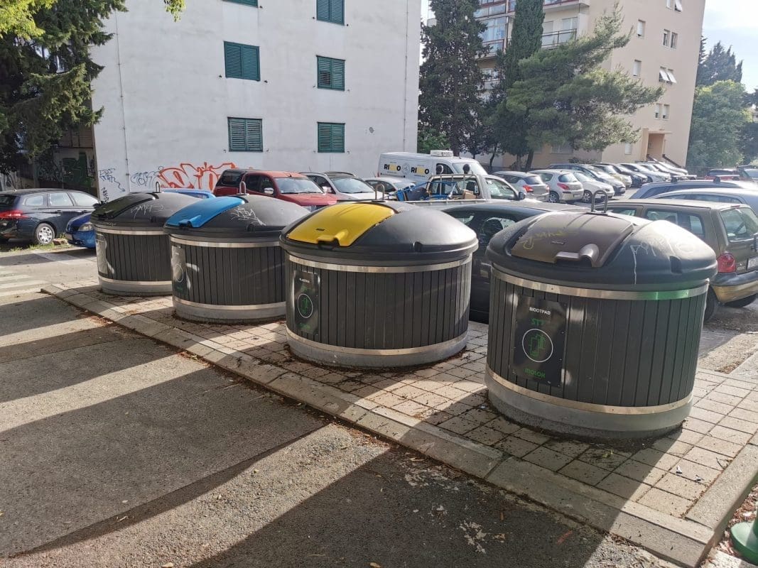 Na svakoj lokaciji nalaze se spremnici za papir, plastiku, miješani otpad i biootpad.