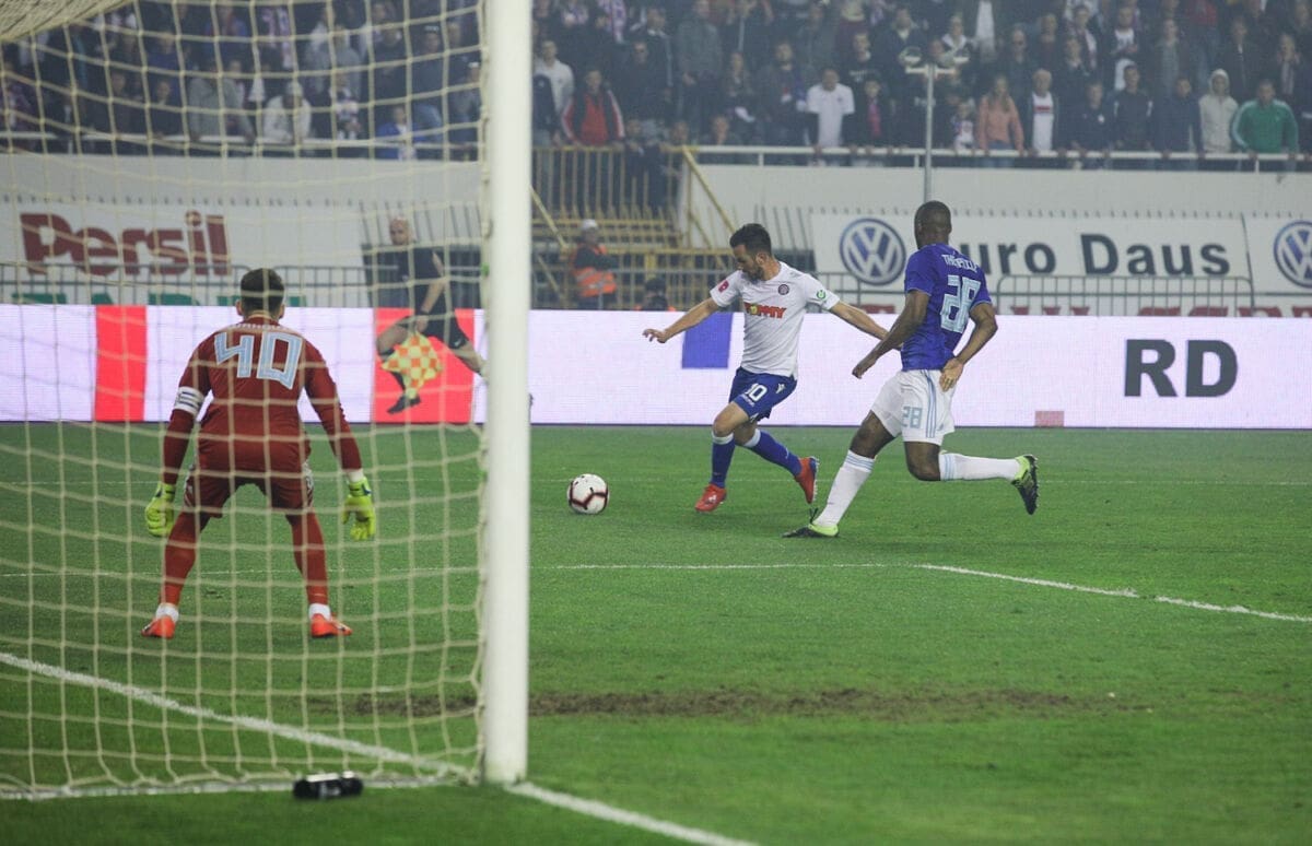 S velike je udaljenosti opalio Kadzior, a Posavec odbio samo do natrčalog Gavranovića koji mirno postavlja 0:1. Hajduk je odmah pokušao uzvratiti, no dobra lopta koja je upućena Bradariću završila je kao nešto između ubačaja i udarca.