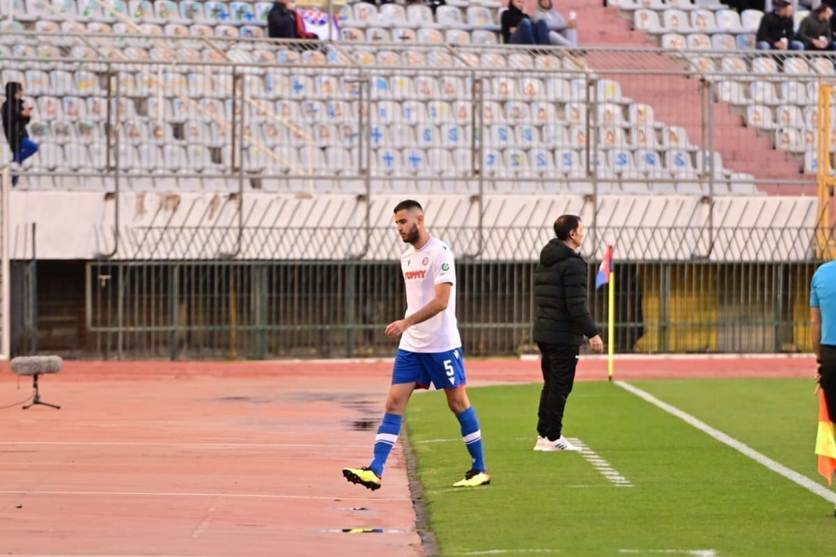 Pčetak drugog poluvremena iz noćne more za Hajduk: Borevković je kao zadnji igrač obrane katastrofalno pogriješio, povlačenjem zaustavio Mlinara i zaradio crveni karton.