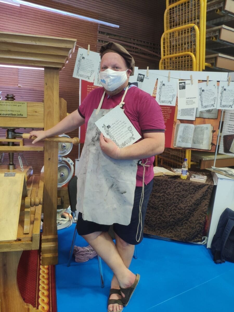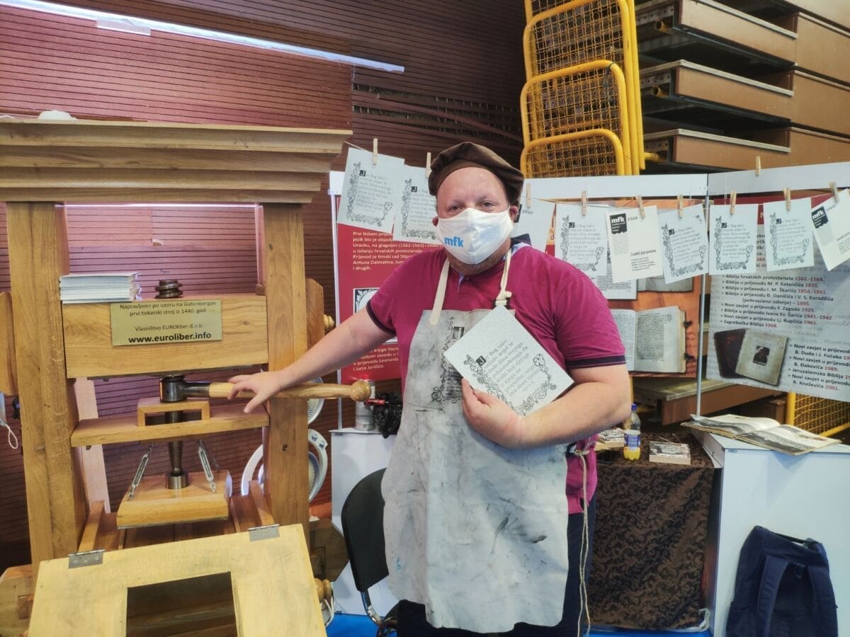Možemo reći da je jedan od nasljednika Gutenberga, točnije njegov moderni pristaša Nijemac Uwe Müller koji već gotovo 30 godina živi u Splitu. On je napravio repliku Gutenbergovog stroja koju je ove godine predstavljao na Festivalu mediteranske knjige u Splitu.