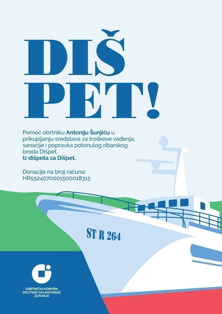 Među svojim kolegama i u javnosti poznat je kao gorljiv borac za interese obrtnika, a redovito sudjeluje u humanitarnim akcijama diljem Hrvatske. Ovog puta pomoć je potrebna upravo njemu, jer se troškovi vađenja, sanacije i popravka 'Dišpeta' broje u milijunima kuna.