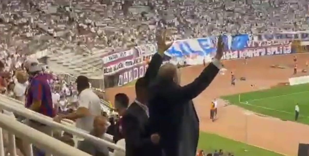 Mladena Grdovića smo snimili u poljudskoj loži. Do njegovog mjesta ga je dopratio jedan muškarac koji ga je cijelo vrijeme držao.