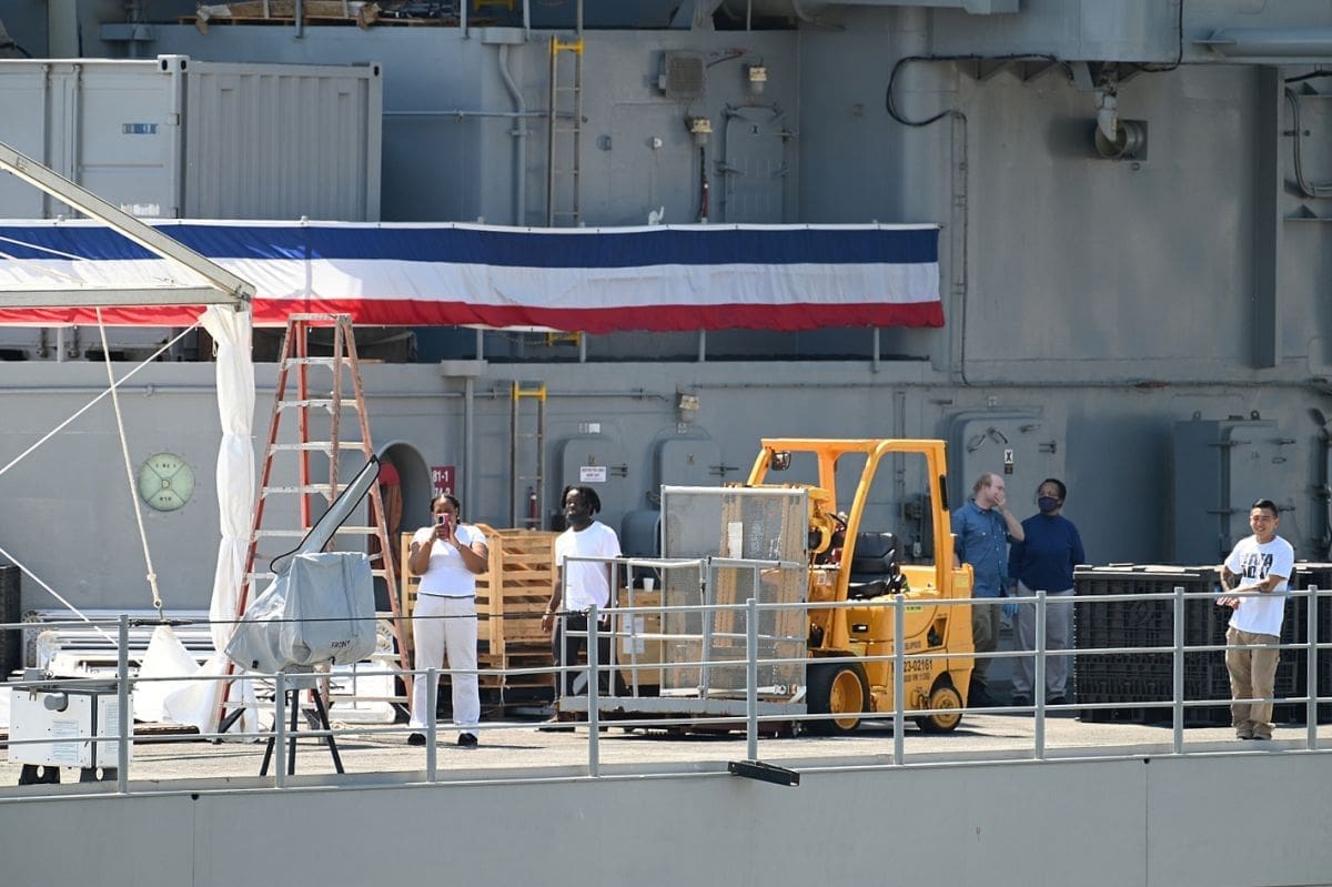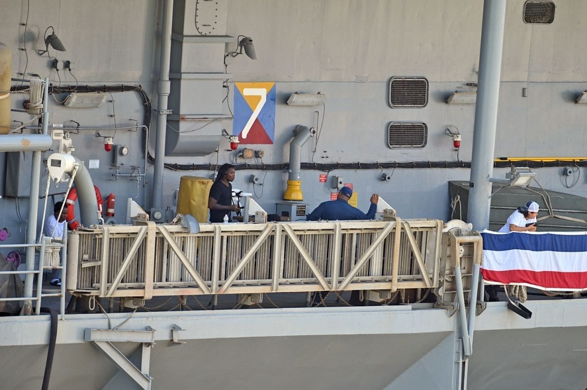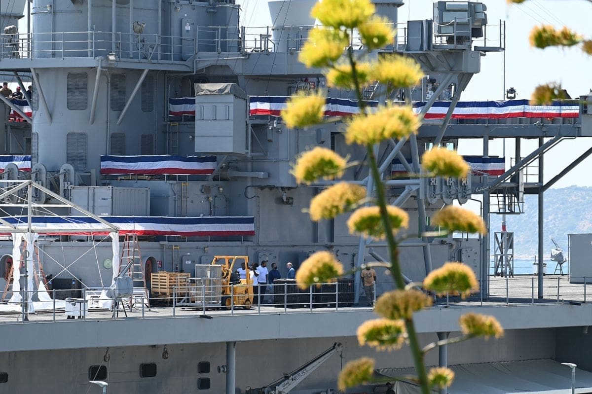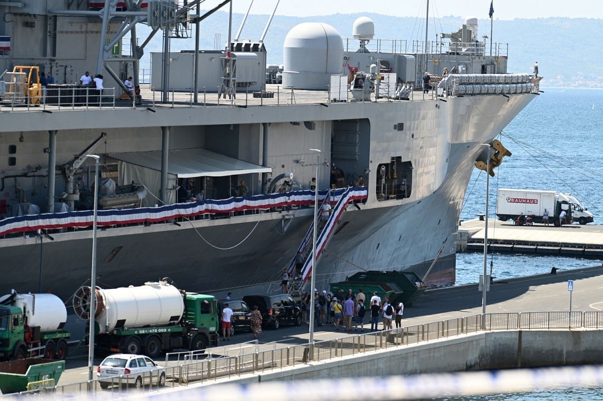 - U Splitu će biti 4 dana. Radi se o zapovjednom brodu američke 6. flote. Boravi u višednevnom posjetu Splitu. S obzirom da je bio problem s Lorom, zatraženo je ako mogu uploviti na vanjski vez luke. Brod je uplovio danas ujutro, a nisu planirane posjete građana.