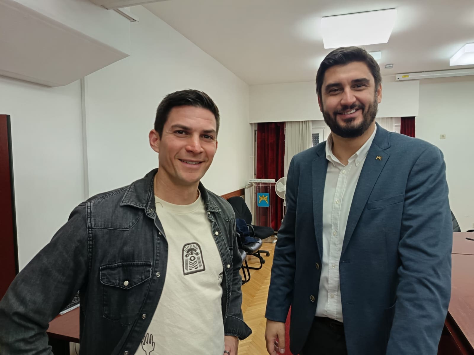 Župan Splitsko dalmatinski Blaženko Boban sa suradnicima: zamjenik Stipe Čogelja, zatim Željko Primorac i Goran Kursar - odjel za sport, kulturu i tehničku kulturu i šef kabineta Župana Davor Pavić primili su igrače, trenera i člana stručnog stožera Hrvatske futsal reprezentacije. Igrači koji su nazočili prijemu su Ivan Jelić, Jakov Hrstić, Duje Kustura, Marin Marušić i Nikola Čizmić, kao i pomoćni trener reprezentacije Duško Martinac te član stožera Hrvatske reprezentacije Ivo Zoković.