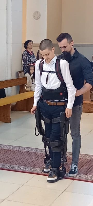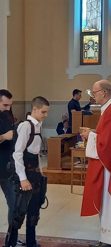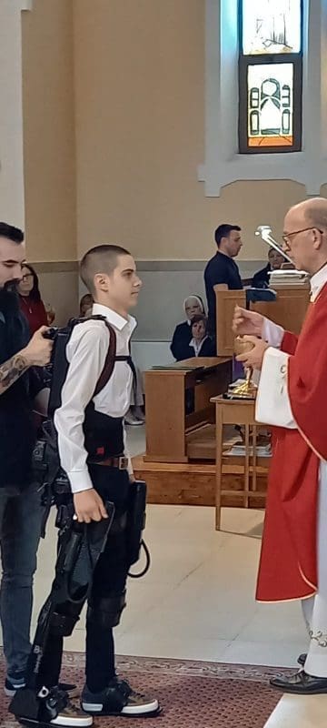 Mateo je jučer sam stigao do svećenika primiti sakrament potvrde, a hodao je uz pomoć robotskog uređaja. U tome je imao pomoć svog kuma.