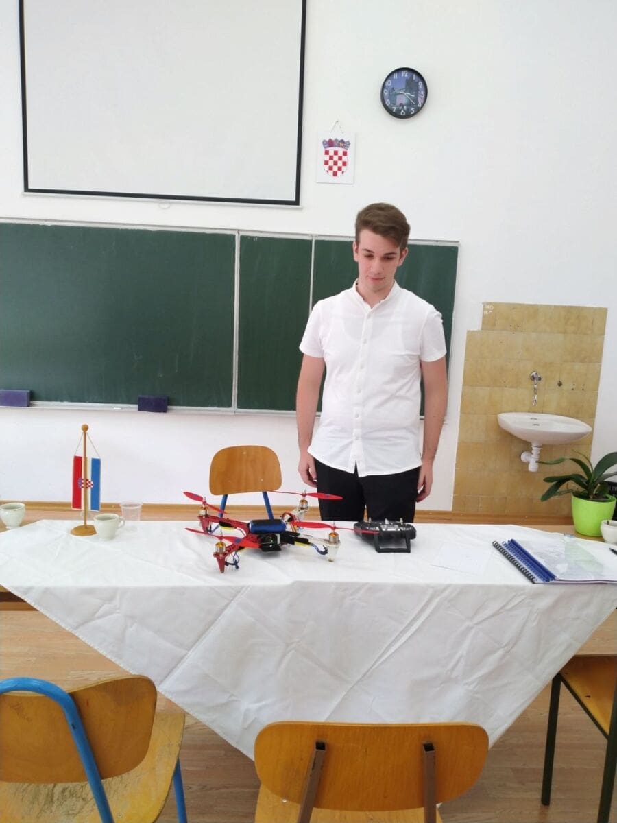 Među radovima ističemo praktični rad našeg učenika Josipa Ajdukovića, koji se obrazovao u zanimanju elektrotehničar, a mentor mu je bio profesor Ivan Vulić, dipl. inž. elektrotehnike. Josip je za završni rad uspješno izradio dron quadcopter s kamerom i wi-fi upravljanjem. Čestitke još jednom i učeniku i mentoru na uloženom trudu, oni su najbolja promidžba naše škole, rekla je Marica Barać, ravnateljica škole.
