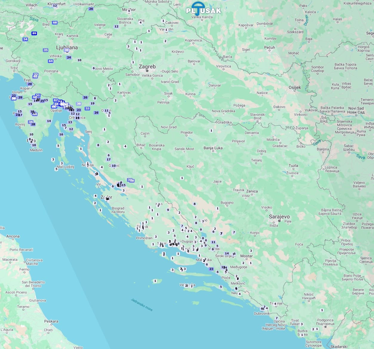 Na Jadranu cijeli dan puše umjereno do jako jugo s vrlo jaki i olujnim udarima. U Splitu vjetar satima ima prosjek 16 m/s, što nije daleko od olujnog prosjeka. Jugo će navečer gotovo sasvim prestati i prolazno okrenuti na vjetar zapadnih smjerova. Pogledajte borbu Jadrolinijinog trajekta s jugom između Supetra i Splita.