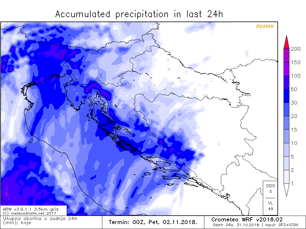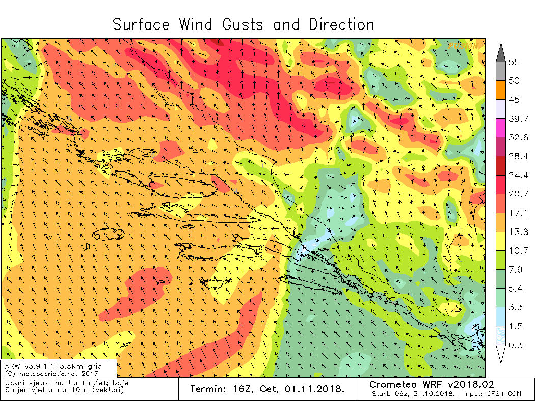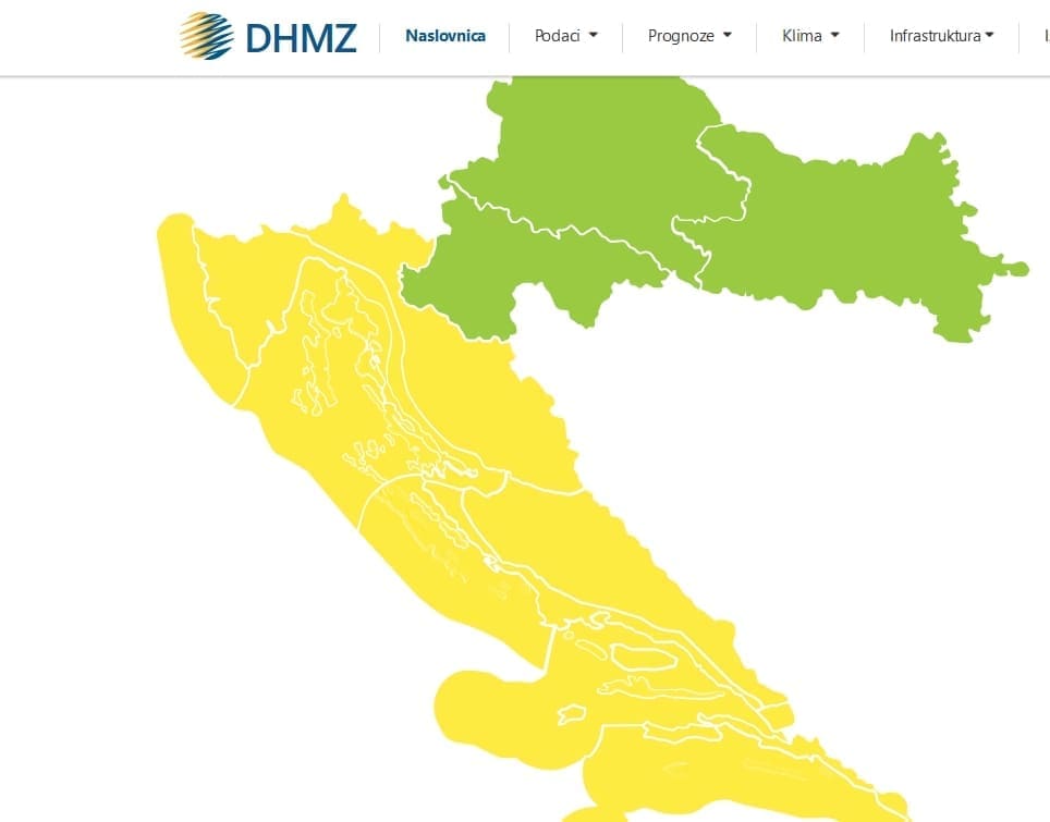 Povodom sutrašnje promjene DHMZ je unutar sustava MeteoAlarm izdao žuti stupanj upozorenja za cijeli Jadran. Za obalno područje upozorenje vrijedi za kišu, te se očekuje 25 do 40 litara kiše po kvadratnom metru, a u Zagori do 50 litara. Na moru je izdano upozorenje na jugo čiji udari mogu dosezati 85 km/h.