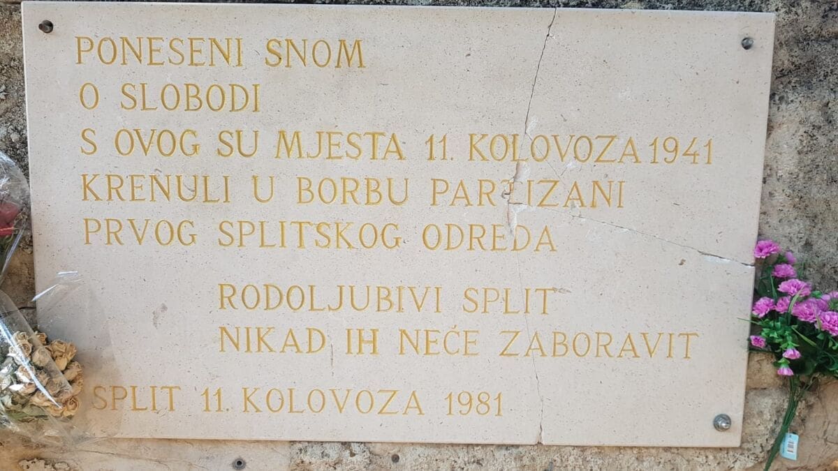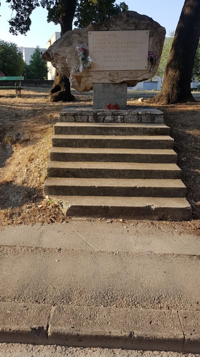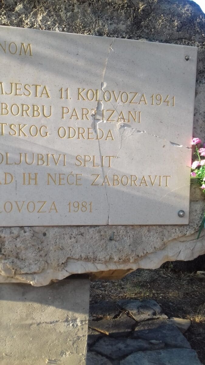 Ponovno je oštećena spomen-ploča Prvom splitskom partizanskom odredu smještena u parku u Vinkovačkoj ulici na Plokitama.