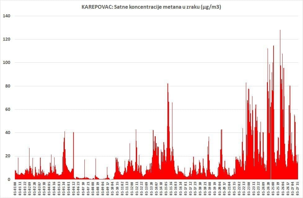 Da se ne radi samo o dojmu ljudi, pokazuju i dokazuju službeni podaci s mjernih postaja na Karepovcu. Tako jer koncentracija metana u zraku od 24. siječnja do danas u 5 satnih termina bila iznad 100 μg/m3. Takva prekoračenja ne znače probijanje dnevne dozvoljene koncentracije, ali u pravilu predstavljaju znak da izvođač mora smanjiti intenzitet radova, kako ne bi došlo do prekoračenja dnevnog limita od 100 μg/m3.