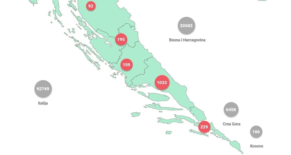 Od 25. veljače 2020., kada je zabilježen prvi slučaj zaraze u Hrvatskoj, do danas ukupno su zabilježene 409.992 osobe zaražene novim koronavirusom, od kojih je 8.704 preminulo. Ukupno se oporavilo 393.375 osoba, od toga 1.215 u posljednja 24 sata.