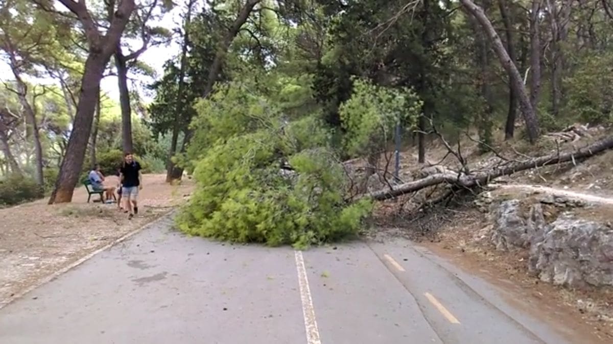 Ovo je drugi put u niti mjesec dana da je palo stablo na Marjanu. Podsjetimo, prije dva tjedna palo je stablo na automobil kod Instituta, a ni onda srećom nije bilo ozlijeđenih.