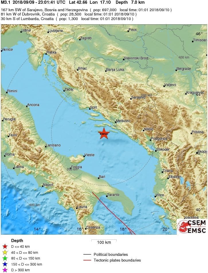 U noći s nedjelje na ponedjeljak oko 1 sat Dalmaciju je zatresao potres magnitude 3.1 po Richteru.