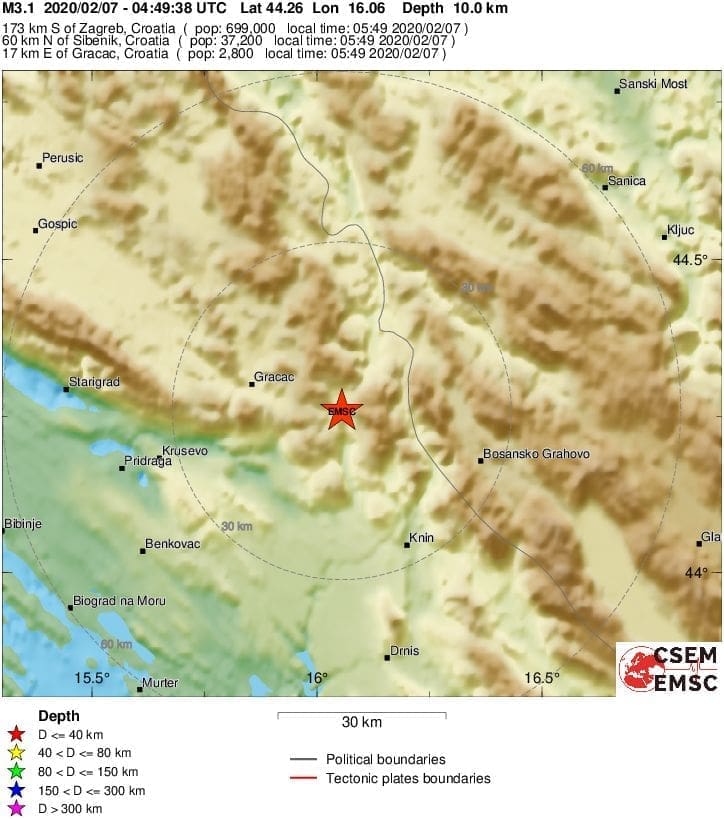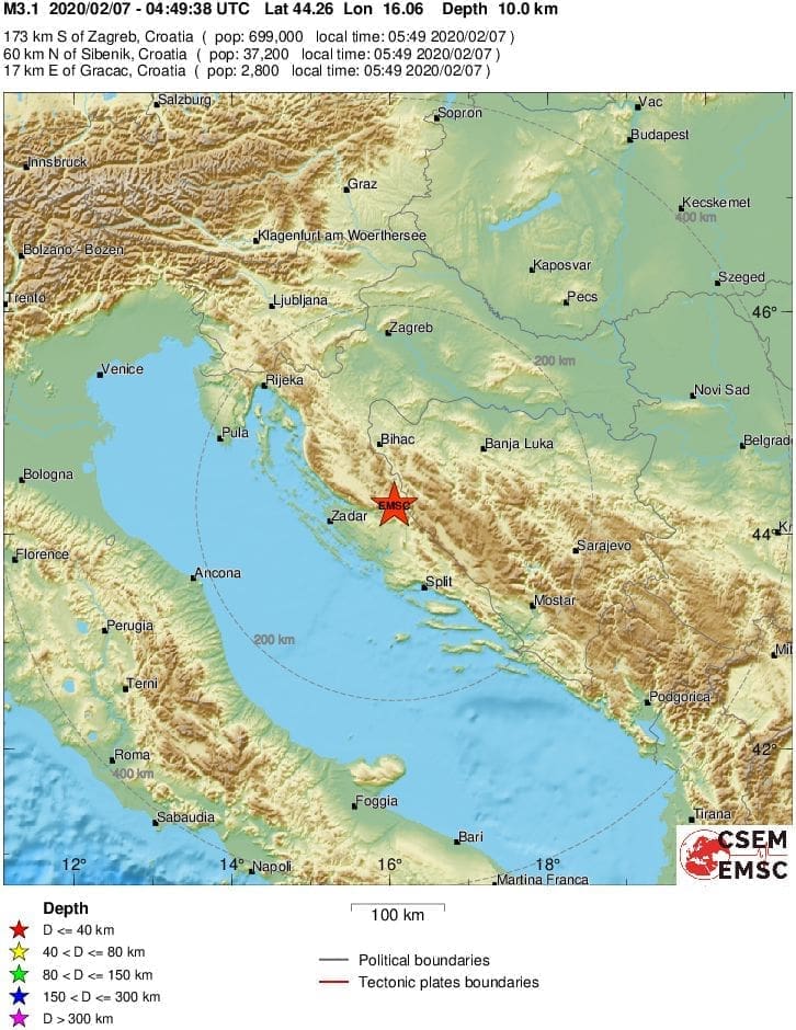 Kninsko područje ne prestaje podrhtavati. Prema informacijama EMSC-a, u 5 sati i 49 minuta dogodio se potres magnitude 3,1 po Richteru, a epicentar mu je bio 17 kilometara istočno od Gračaca.