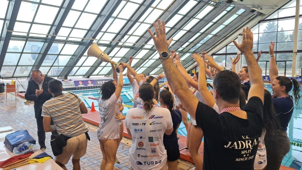 Sjajna atmosfera bila je i na tribinama, prava navijačka. A utakmica prava, borbena, kvalitetna. Navijalo se i za jedne i za druge. Jadran opet slavi, u dva dana dvije titule, jučer vaterpolisti i danas djevojke Jadrana. Kakva sezona!