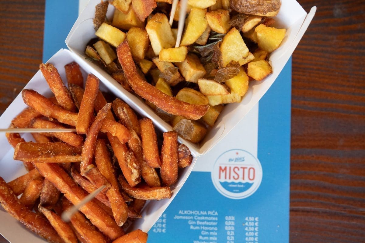 Kako smo u Dalmaciji, upotpunili su meni i nekim tradicionalnim jelima poput Komiške pogače, poznate slane pite, tradicionalnog jela otoka Visa. U street food varijanti dolazi umak od rajčice, luka, slanih inćuna, sardine, kapara uz dodatak kroketa. Najčešća finger food postastica na svim festivalima su krumpirići, ali ovog puta domaći i hrskavi začinjeni ružmarinom, predstavljaju pravi miris i okus Dalmacije. Tradicija se nastavlja uz još jedno jelo koje morate probati, a idealno je i za vegetarijance – soparnik, tradicionalne recepture uz dodatak blitve, maslinova ulja i luka.