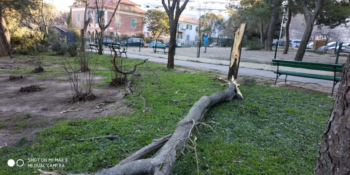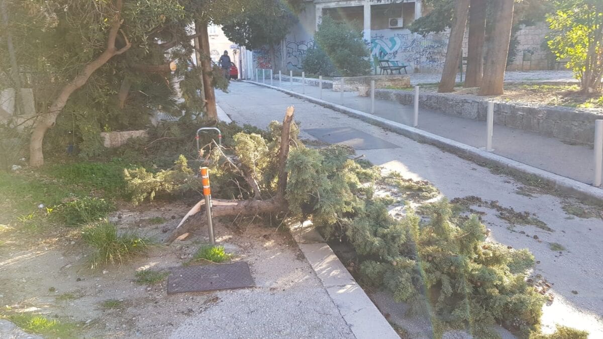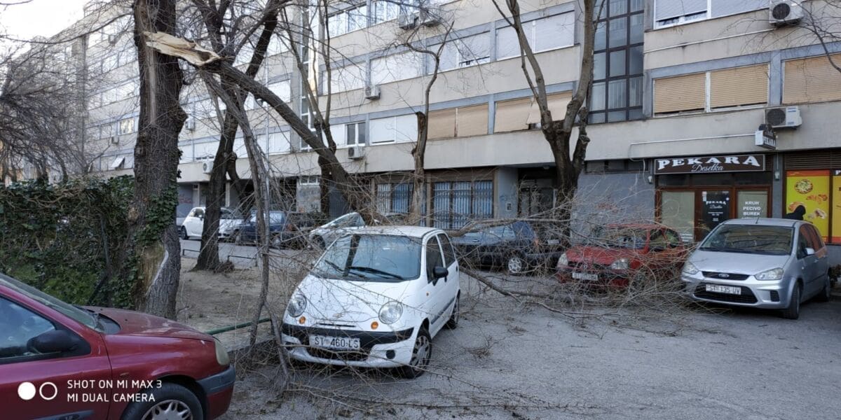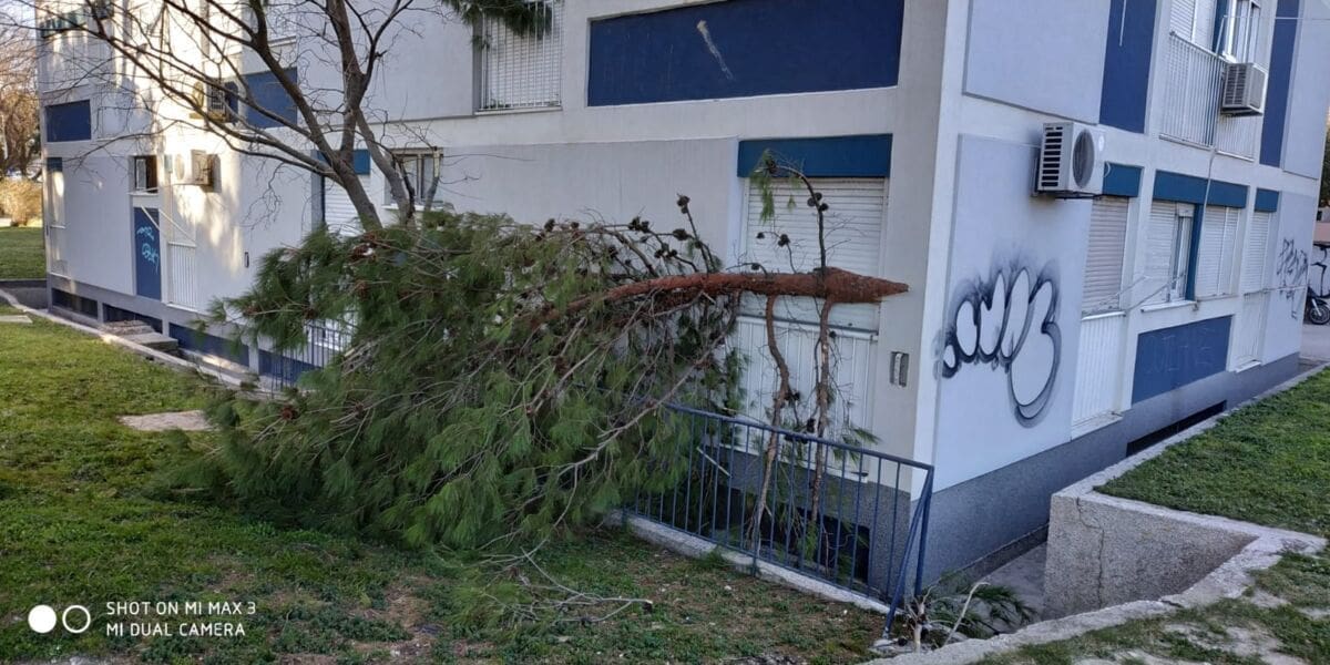 Ondje je došlo do pada većeg broja stabala, a jedno je zagradilo izlaz s parkinga te poklopilo automobil.
