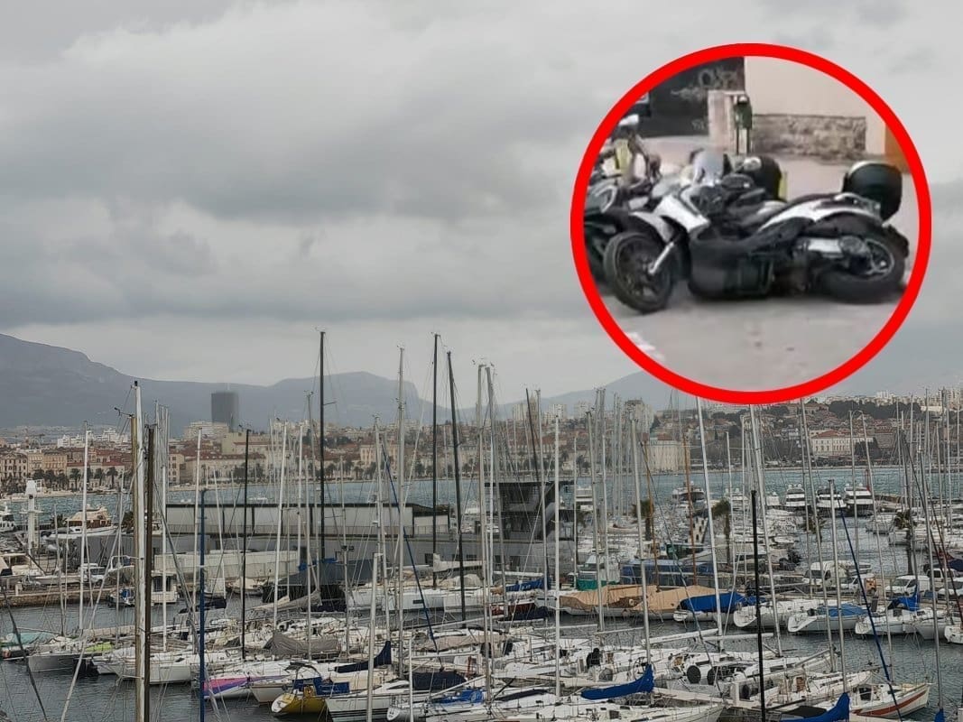 U centru Splita tako je jako jugo srušilo cijeli niz parkiranih motocikala, samo su jedan na drugoga srušili, kao domino kocke.