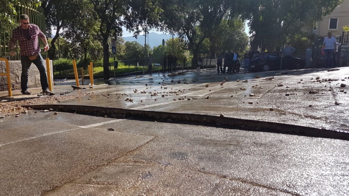 Jutros je došlo do puknuća cijevi na križanju Nazorove i Plinarske ulice u Splitu, iznad tamošnje osnovne škole. Ogroman mlaz vode slijeva se niz cestu, a bujica je zahvatila dio Matoševe ulice.