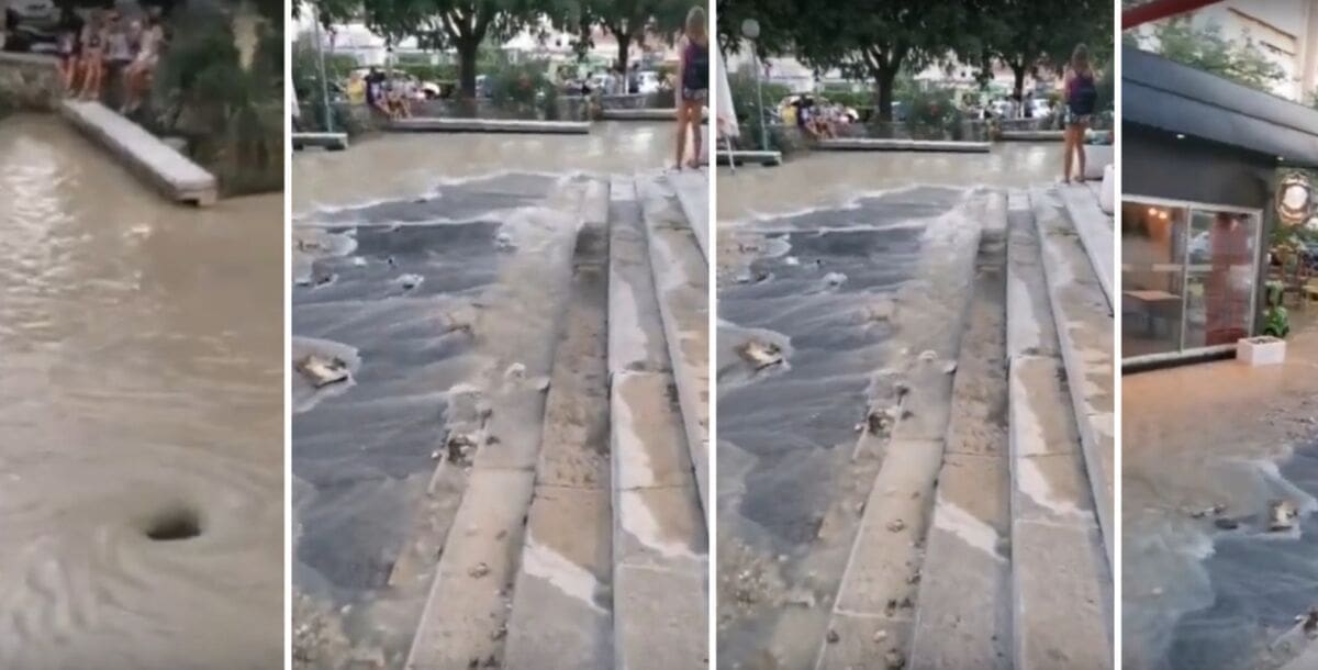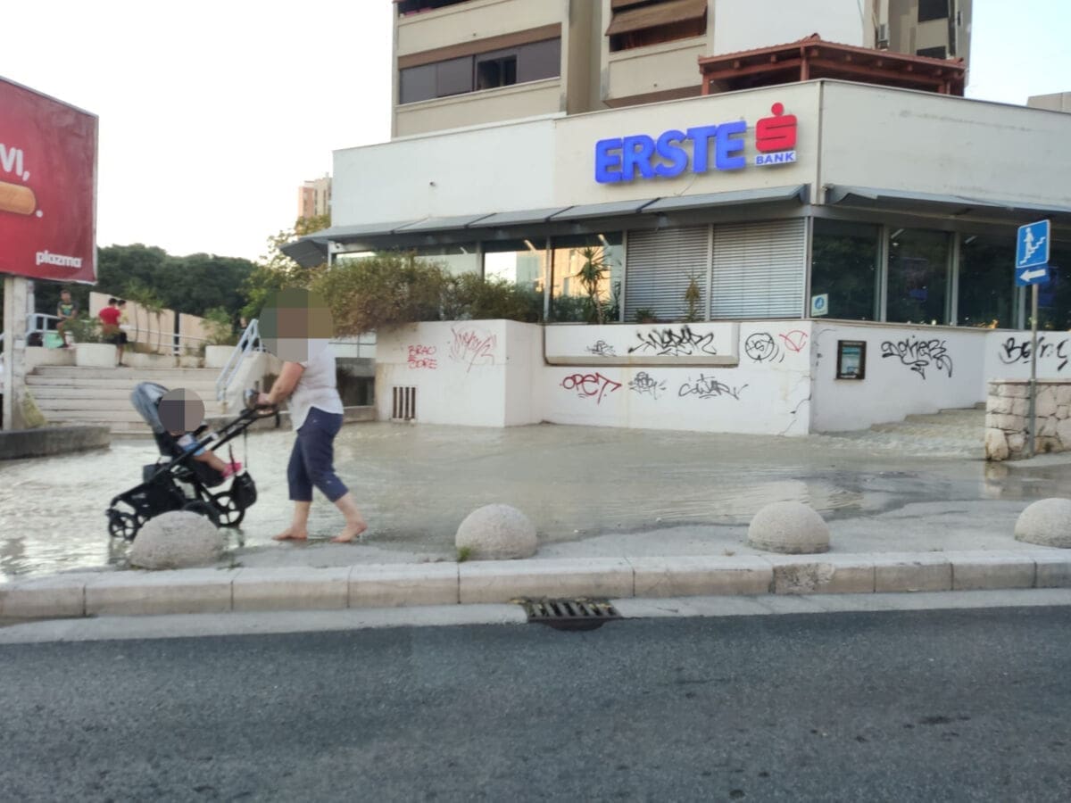 Kako se može vidjeti, do puknuća je došlo u Ulici Ruđera Boškovića kod ulaza broj 9. Bujica je nosila zemlju i kamenje te se velik dio šetnice našao pod vodom.