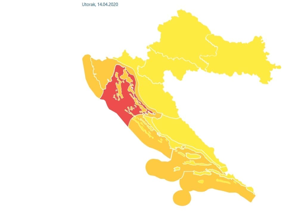 DHMZ je unutar sustava MeteoAlarm za cijelu obalu izdao narančasto upozorenje zbog bure, a za Podvelebitski kanal i crveno upozorenje.