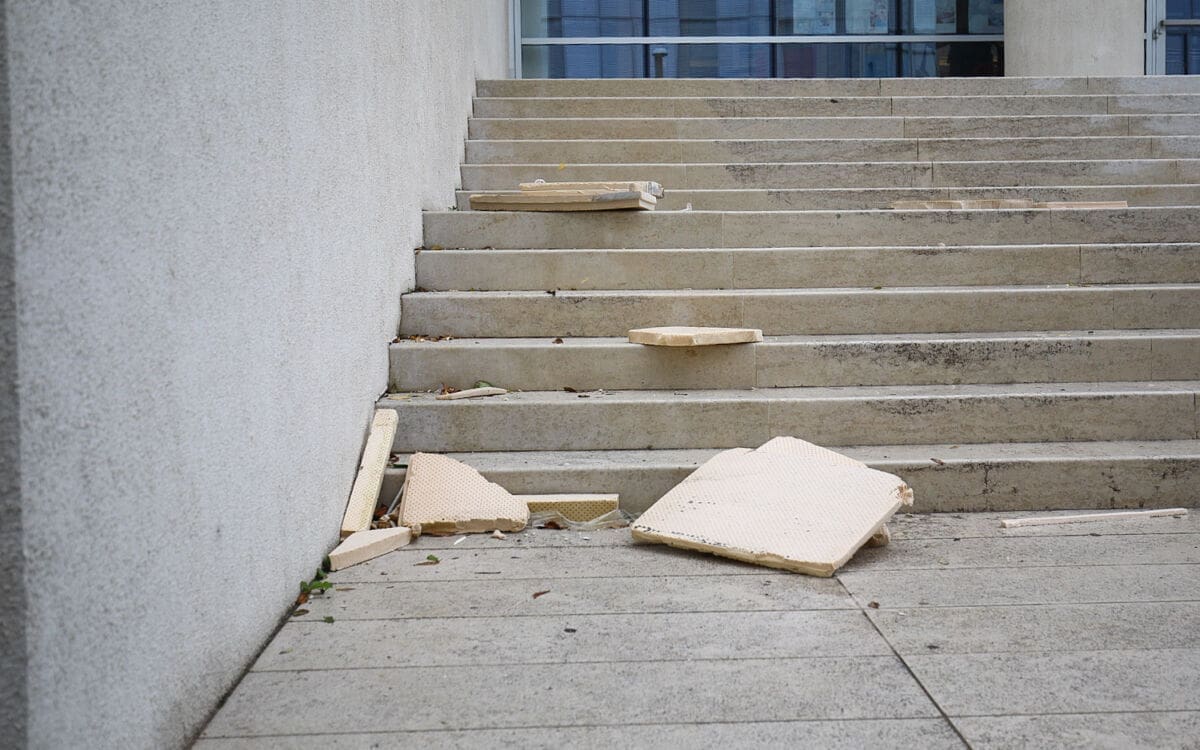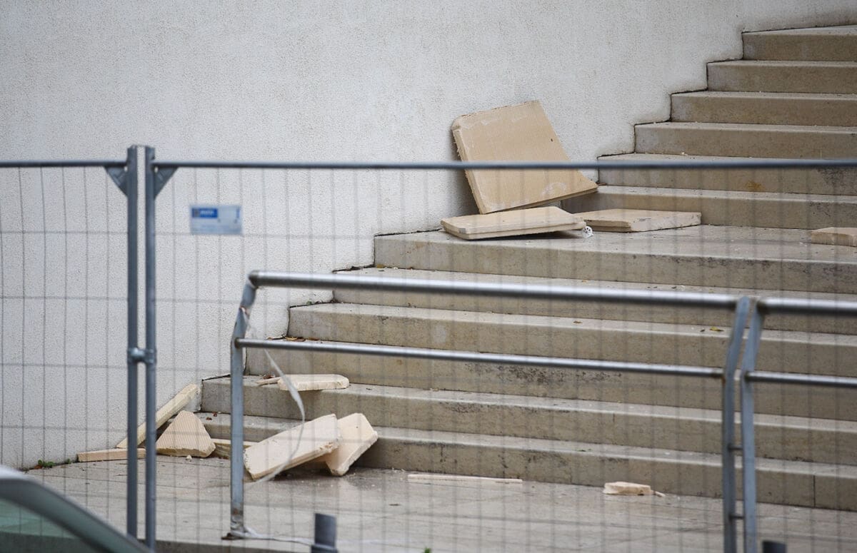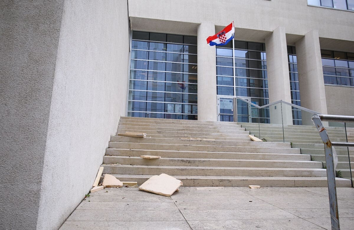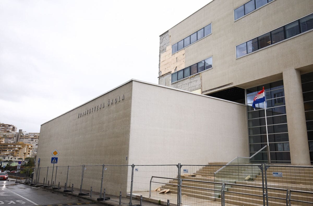 Po tko zna koji put jak vjetar otpuhao je fasadu sa splitske Zdravstvene škole. Ovoga puta otpuhalo ju je jako jugo.