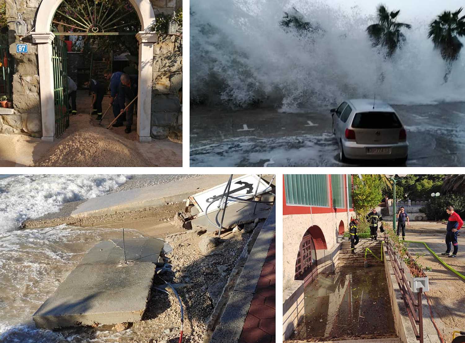 - Nevrijeme je počelo jutros iza 5 sati. Dojave su počele oko 5:30 da more ljudima ulazi u konobe, da im miče automobile u dvorištima i da more prodire u kuće. U petak navečer bila je jaka kiša, no to nevrijeme nije donijelo probleme. Ujutro se dogodilo mrtvo more, odnosno višemetarski valovi su pogodili Podgoru bez daška vjetra. Na fotografijama koje sam snimio vidi se da valovi bili viši od 4 metra - govori nam Mršić.