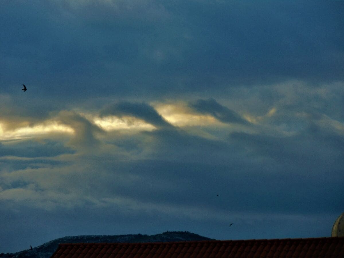 Lijepom prizoru mogli su u subotu poslijepodne svjedočiti stanovnici Kaštela, u pravcu Kozjaka. Na nebu su se pojavili oblaci koji se pojavljuju jako rijetko. Spadaju u skupinu cirusa i zovu se Kelvin-Helmholtz cirusi.