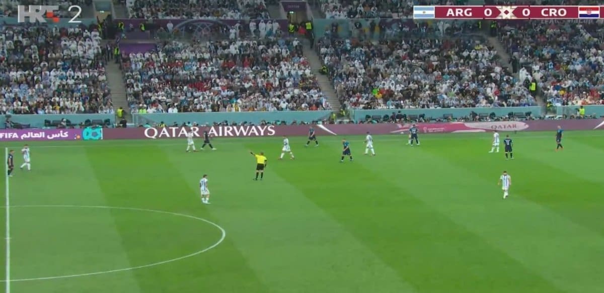 32' Kazneni udarac za Argentinu svira sudac. Alvarez je pobjegao nasoj obrani a srušio ga je naš vratar. Kovačiću zuti karton zbog prigovora. Traje pregledavanje u VAR sobi.