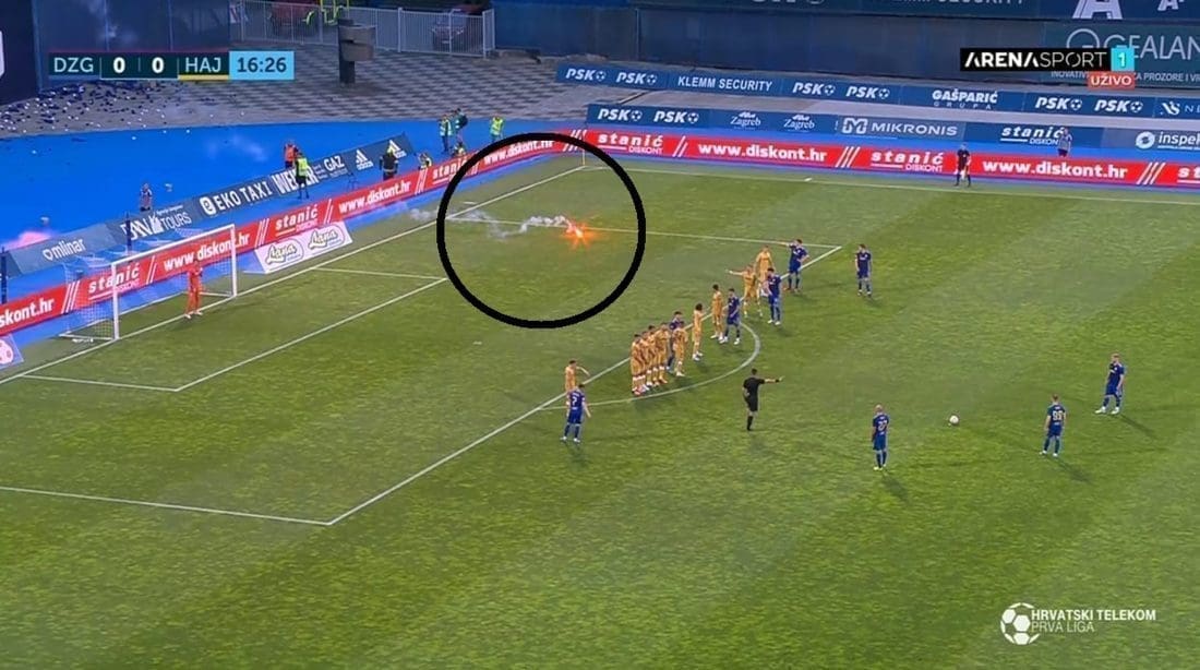 U jednom trenutku je bakljada navijača Dinama na kratko prekinula utakmicu.