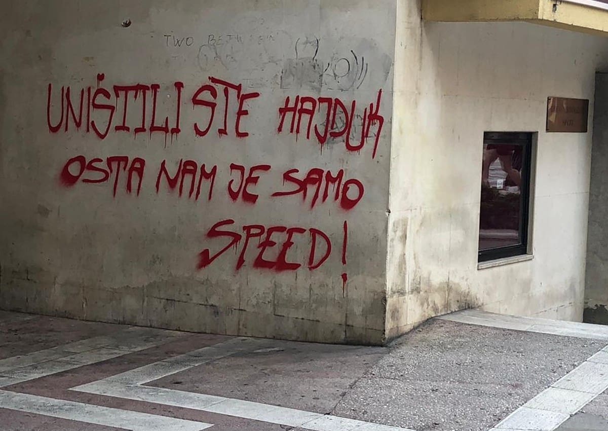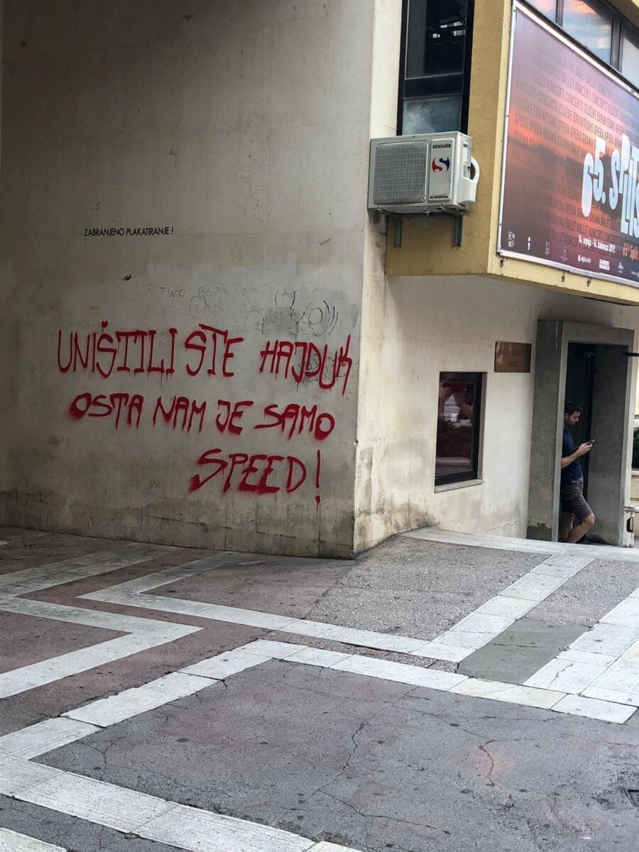 Noćas je na zidovima Hrvatskog NARODNOG KAZALIŠTA osvanuo grafit znakovite poruke: "Uništili ste Hajduk, osta nan je samo speed!".