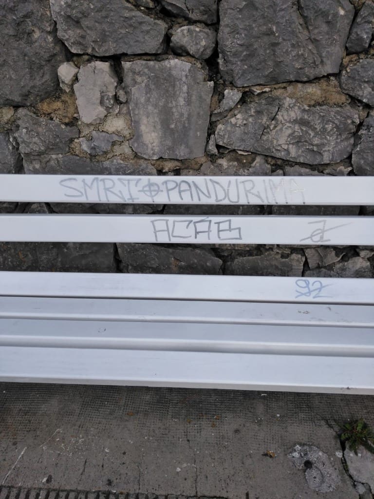 Naš čitatelj a vrijeme šetnje po Marjanu, na potezu od Prve vidilice uz Židovsko groblje, ugledao je brojne išarane šentade, pune neprimjerenog sadržaj.