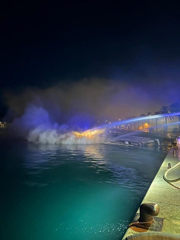 Kako se neslužbeno doznaje jahta je sa šestero gostiju bila usidrena u luku, a požar je buknuo ispod krme gdje su bila parkirana dva jet skija. Brod je prema navodima lokalnih medija u vlasništvu jednog poduzetnika iz BiH koji se u Makarskoj bavi stanogradnjom. Superjahta koju posjeduje, a izgrađuje ju Ferretti u Italiji, stoji više od tri milijuna eura. Ima još dva pomoćna broda te se reklamira kao jedno od luksuznijih iskustava na našoj obali u čarter varijanti. Članovi posade hrvatski su državljani, a jahta je plovila pod zastavom Malte.