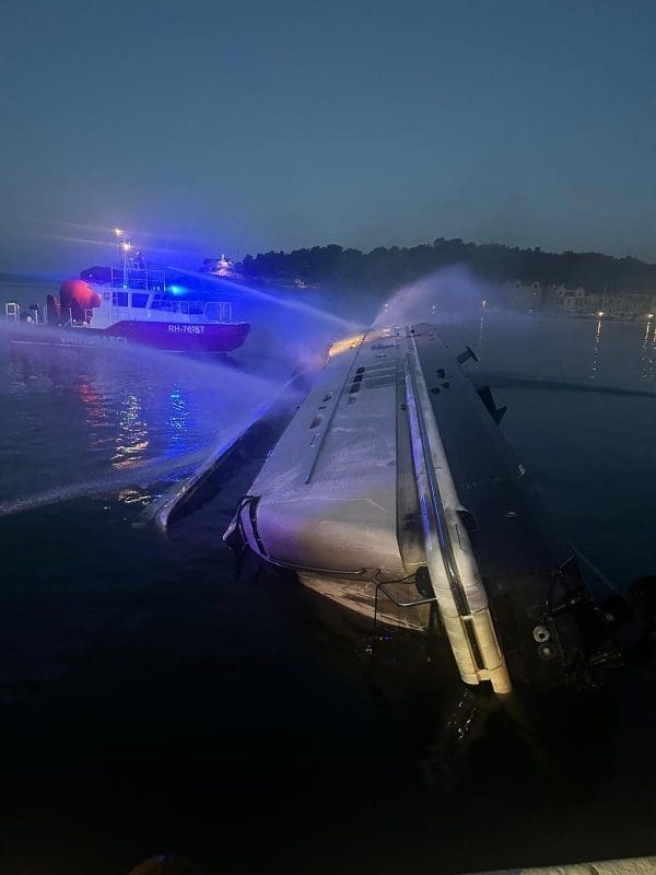 No u požaru je potpuno izgorjela, potopila se na jedan bok, ali s nekoliko metara brod još viri iz mora. Oko pet tona goriva nalazilo se u spremniku broda čiji tjedni najam kako se može vidjeti u raznim ponudama iznosi oko 90 - 100 tisuća eura, prima deset ljudi plus članove posade, a njihovih je ukupno pet kabina. Jednu od njih lupajući po prozorima i brodu uspjeli su alarmirati domaći državljani, neslužbeno ljudi koji također rade poslove oko čartera s jahtama, piše Večernji list.