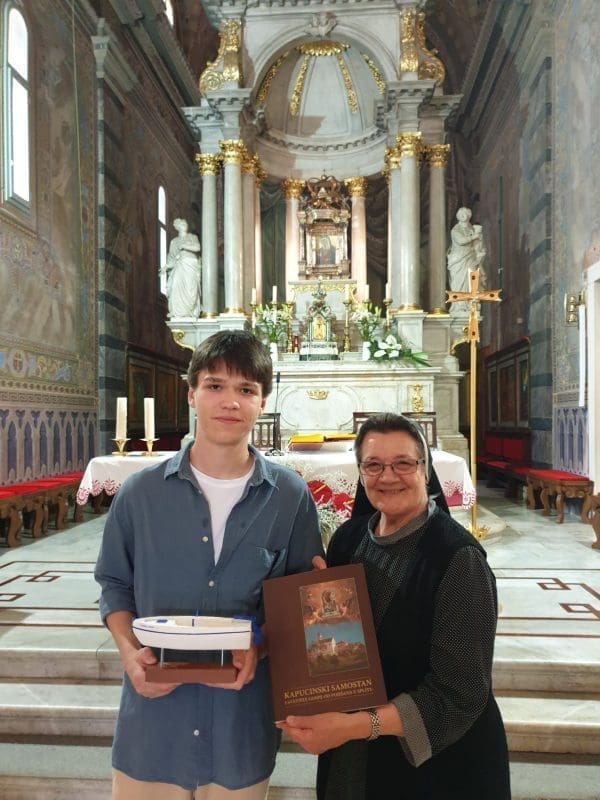 Predstavnik eko grupe Niki Krstičević, učenik generacije Pomorske škole Split i administrator učeničke Instagram stranice @zdravomore.eko samostalno je izradio maketu ribarske brodice, dok su ostali učenici uz razrednicu troškove materijala za njezinu izradu zajednički podijelili. Svojim činom ganuli su fra Žarka Lučića i časnu Dolores Brkić. Uz pohvalne riječi časne, ovi splitski maturanti svoj će dan zasigurno pamtiti i po razgledu zavjetnih slika te modela brodova u Gospinu svetištu na Pojišanu. Radi se o najvećoj i jedinoj zbirci te vrste u Splitu koja potvrđuje pomorsko-brodarsku tradiciju Splićana. Za kraj svog svečanog čina učenicima i njihovoj razrednici uručeni su prigodni darovi.