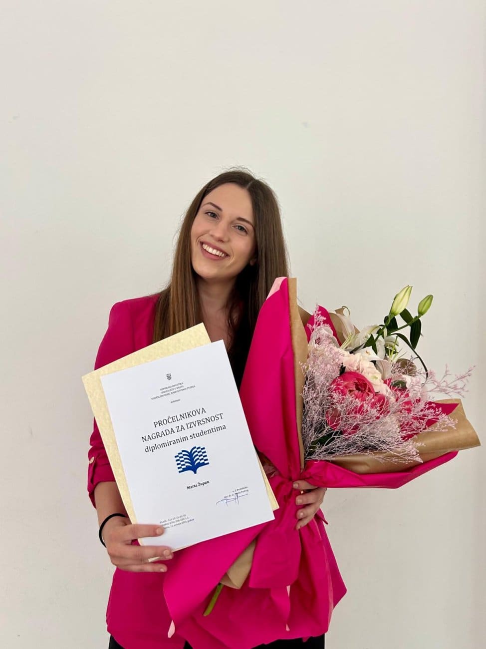 Među studentima će ostati zapamćena po tome što su joj u samo jednoj godini uručene čak dvije nagrade za izvrsnost, Rektorova i Pročelnikova. Jedna je od rijetkih kojoj su i grad Obrovac i općina Jasenice dali priznanje zbog iznimnih sportskih uspjeha.