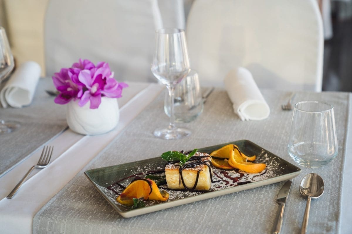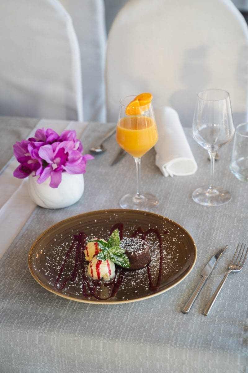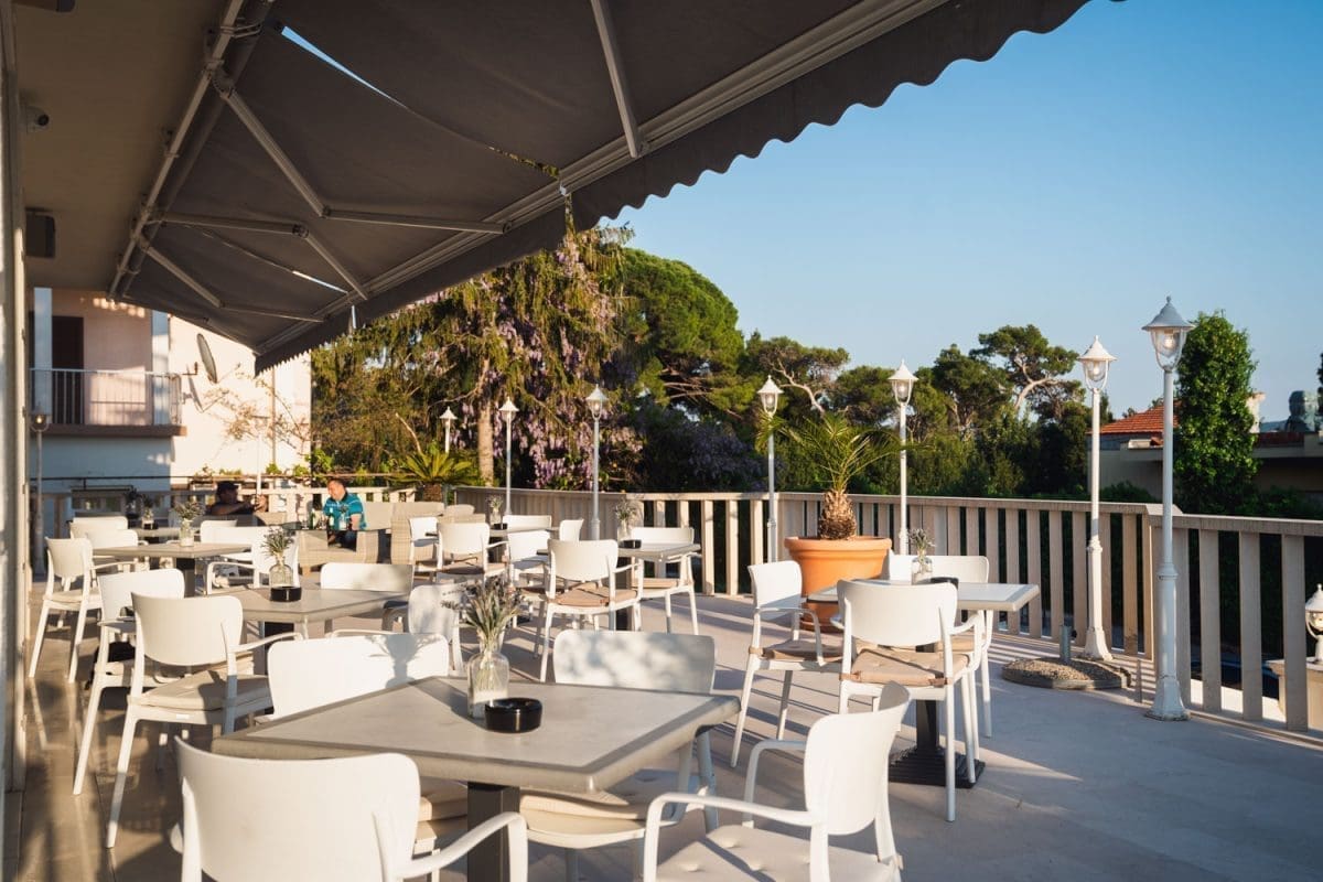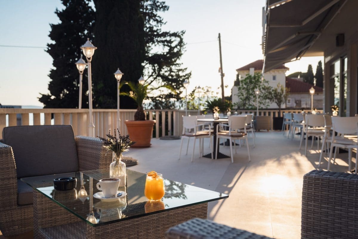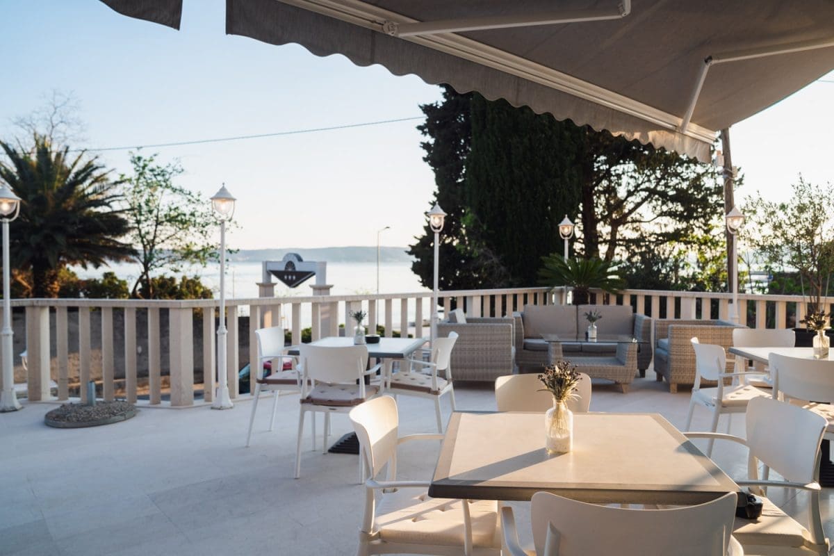Uz prekrasan pogled na zaljev u Jadranskom moru, ovo opuštajuće mjesto idealno je za susret s prijateljima za uživanje u laganom obroku, čaši vina ili ukusnim desertima uz kavu ili čaj.