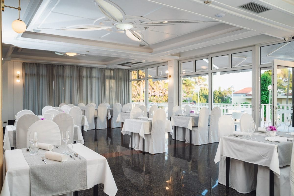 Poboljšan restoran s novim šefom kuhinje, na svom pomno isplaniranom jelovniku nudi domaća, ali i jela mediteranske kuhinje pripremljena s ljubavlju pokazujući koliko svestranih kreacija za takva jela postoji. Za sve one koji preferiraju uživati na otvorenom, tu je prostrana terasa hotela koja će zaintrigirati i najzahtjevnije posjetitelje.