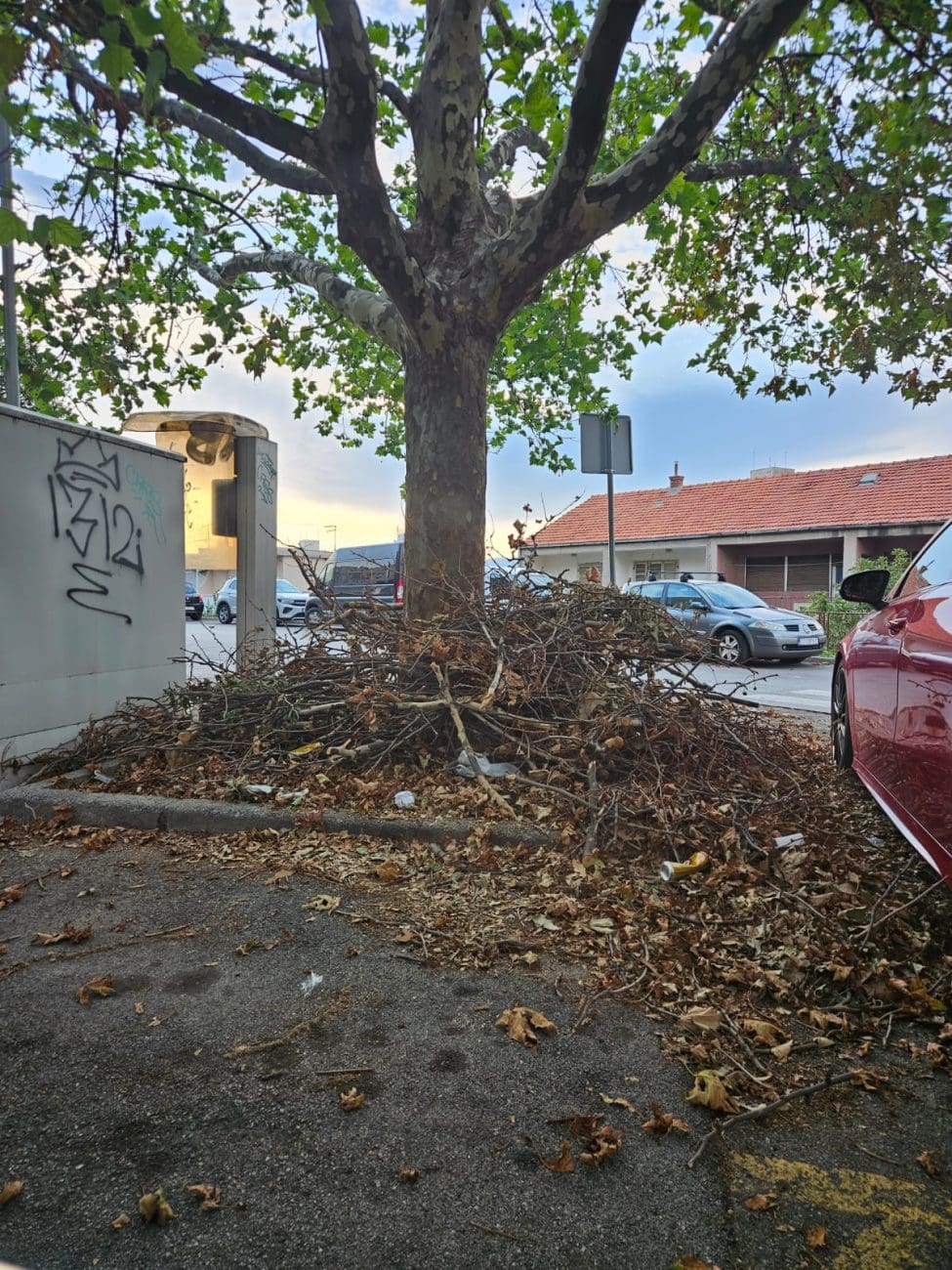 Više od mjesec dana nakon olujnog nevremena koje je 8. srpnja pogodilo Split, u nekim kvartovima i dalje su vidljive njegove posljedice. Grančice, lišće i suho granje, koje je vjetar tada otkinuo s drveća, još uvijek stoje.
