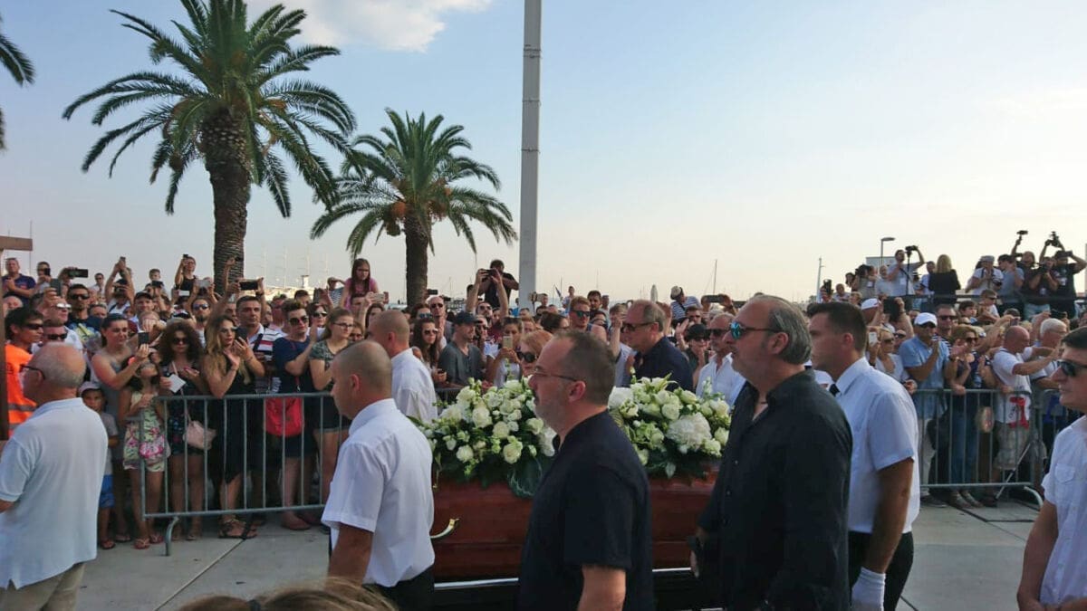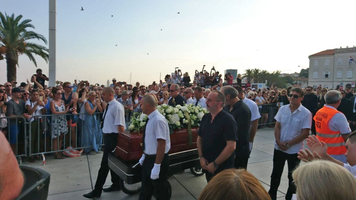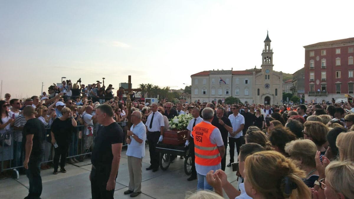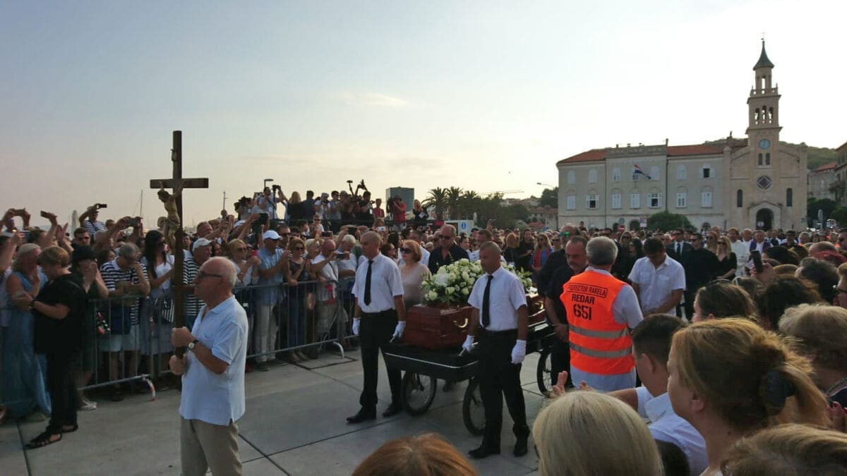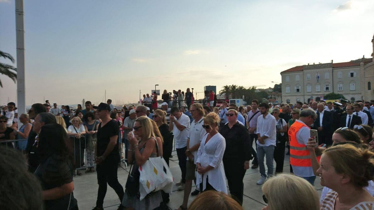 18:59 - Deseci tisuća ljudi nalaze se na Rivi, a na moru je stotinjak brodica. Lijes je krenuo od zapada prema istoku Rive. Uz lijes se, među ostalim, nalazi Tony Cetinski.