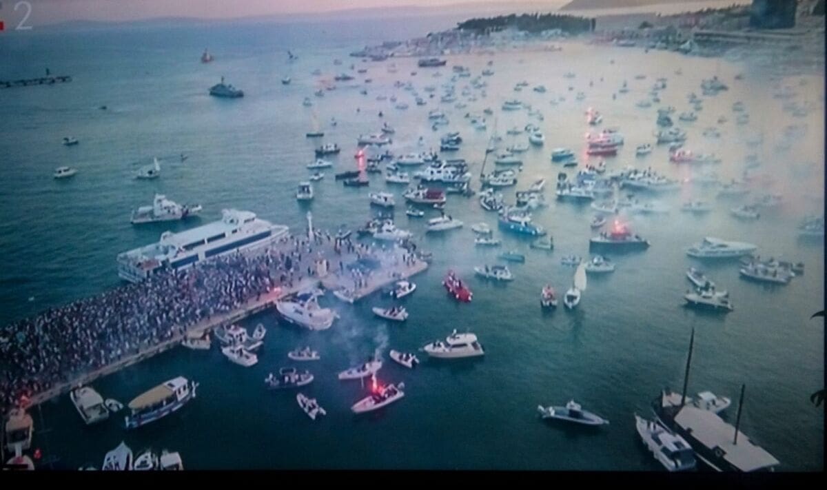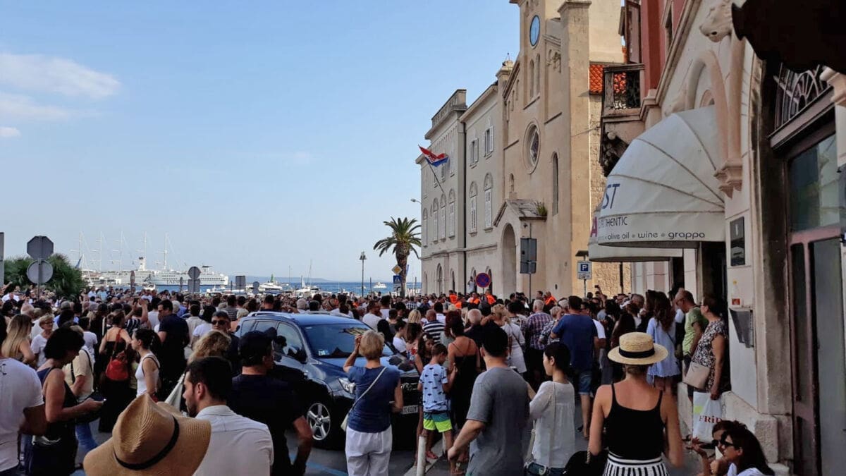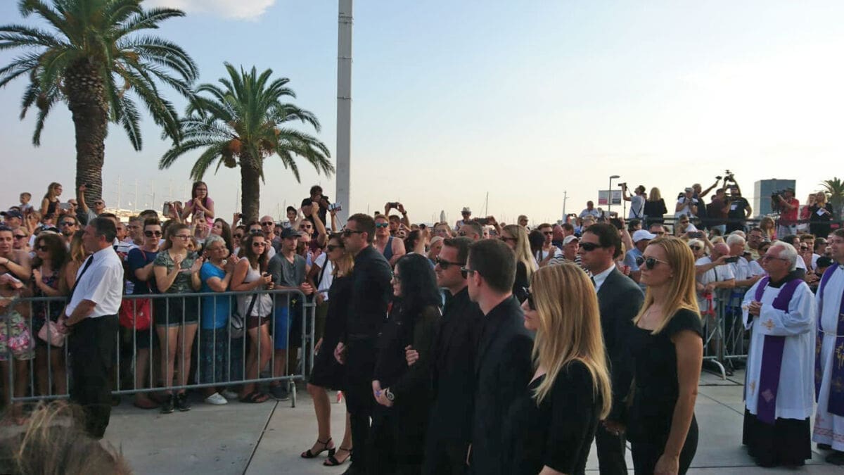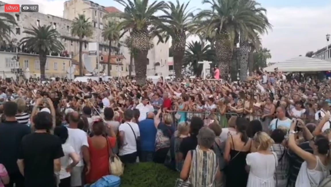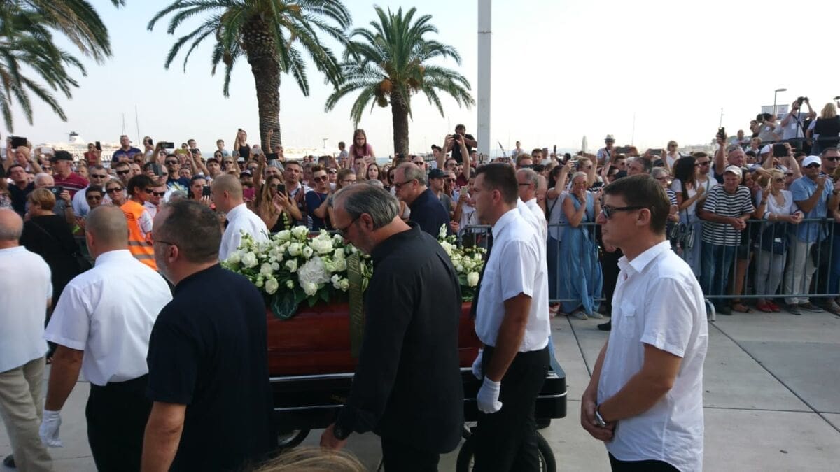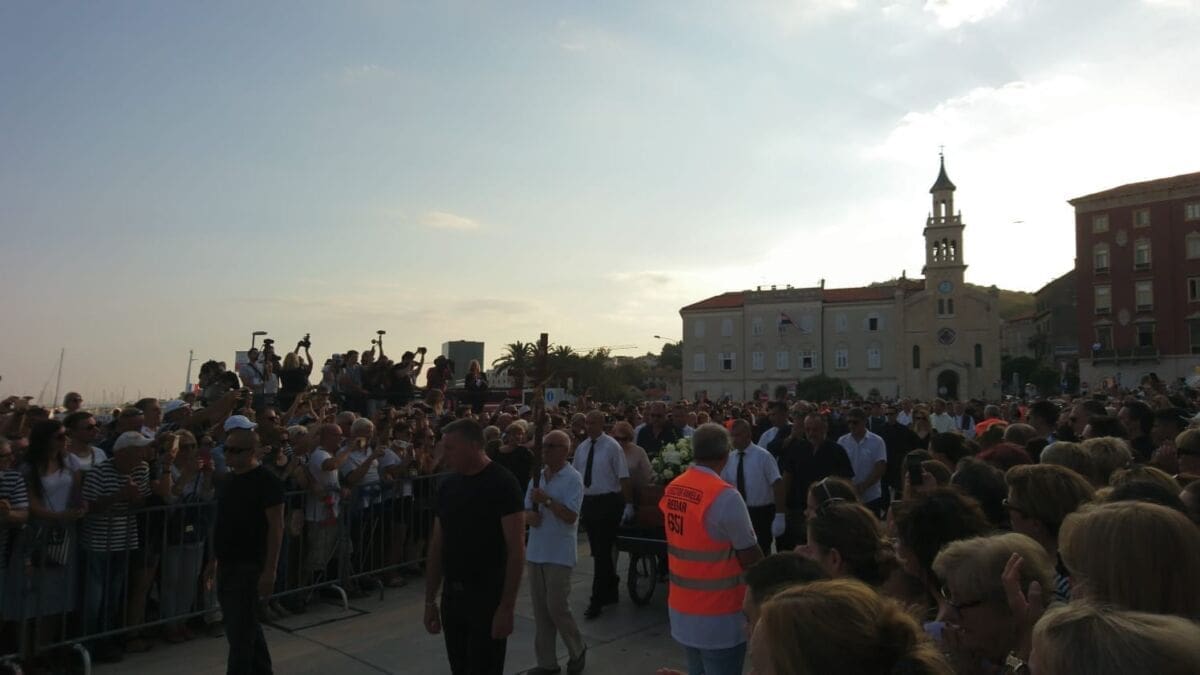 18:59 - Deseci tisuća ljudi nalaze se na Rivi, a na moru je stotinjak brodica. Lijes je krenuo od zapada prema istoku Rive. Uz lijes se, među ostalim, nalazi Tony Cetinski.