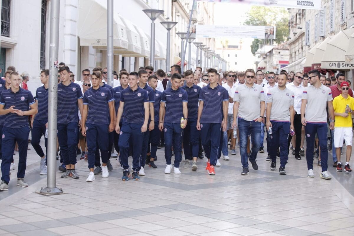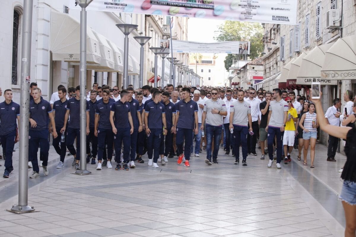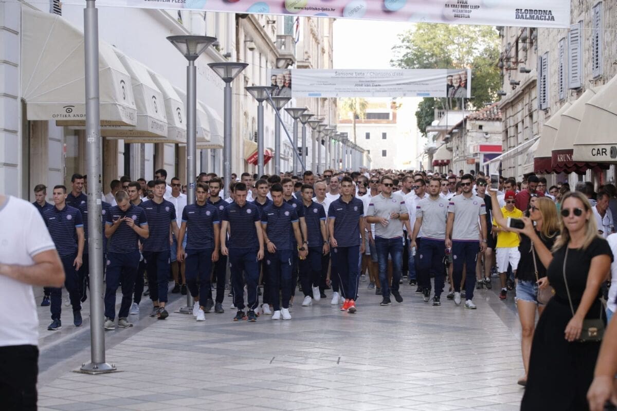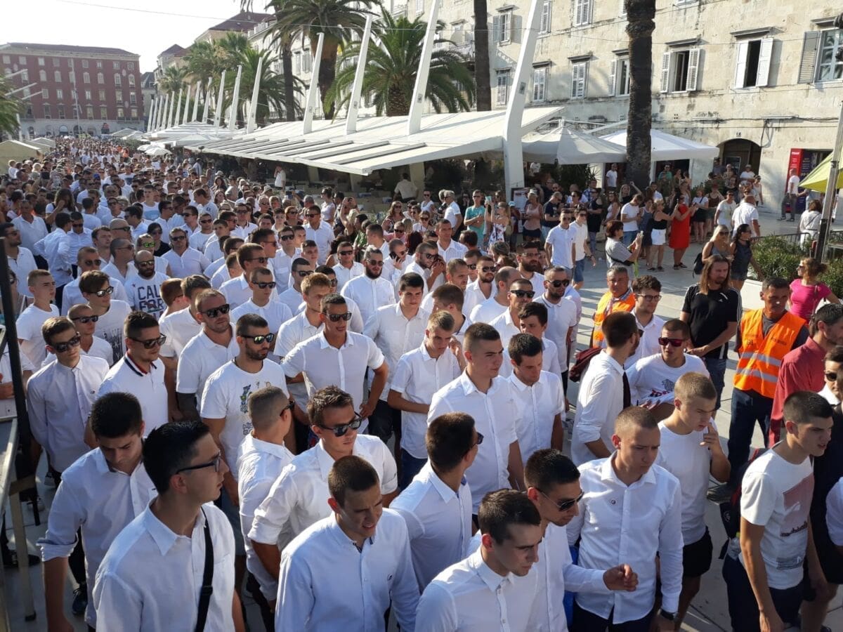 19:02 - Torcida je formirala špalir preko cijele rive. Klapa pjeva obradu Oliverovog evergreena Cesarica. Na Rivi svi žele vidjeti Oliverov lijes i poslati posljednji pozdrav legendi